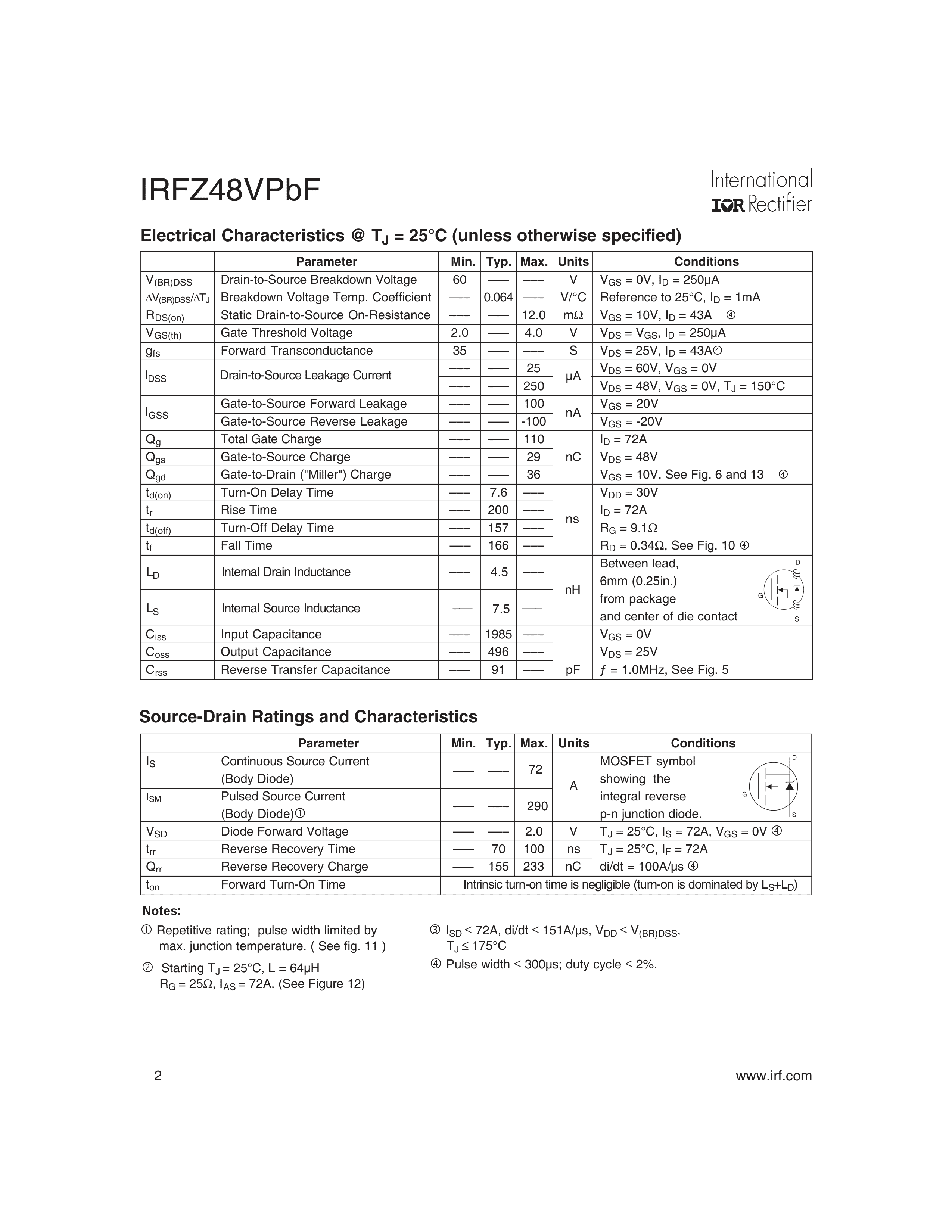 IRFZ48VPBF数据手册TO-220(TO-220-3)封装Infineon(英飞凌)PDF规格