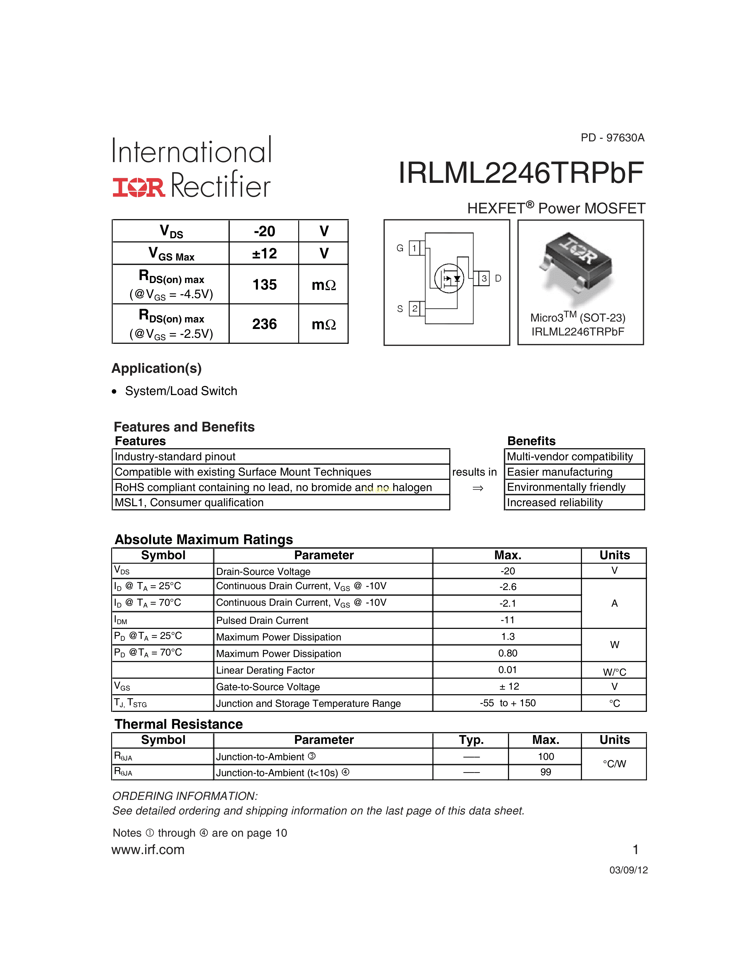 IRLML2246TRPBF数据手册SOT-23(SOT-23-3)封装Infineon(英飞凌)P