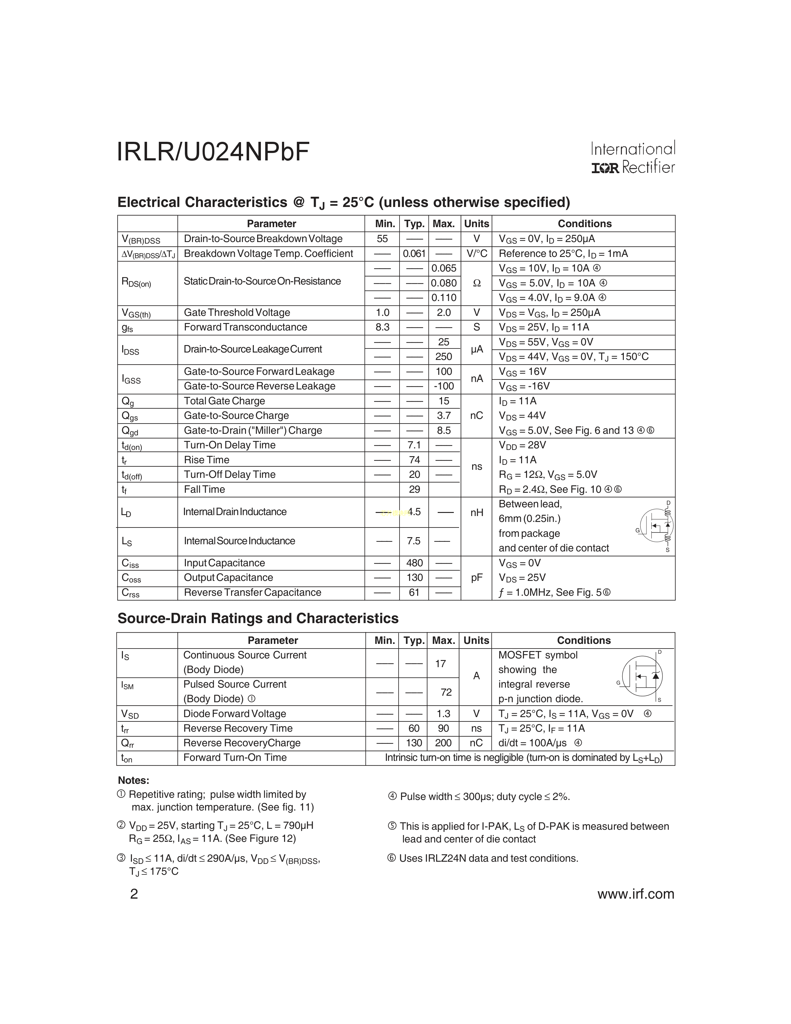 IRLU024NPBF数据手册TO-251(I-PAK)封装Infineon(英飞凌)PDF规格书,