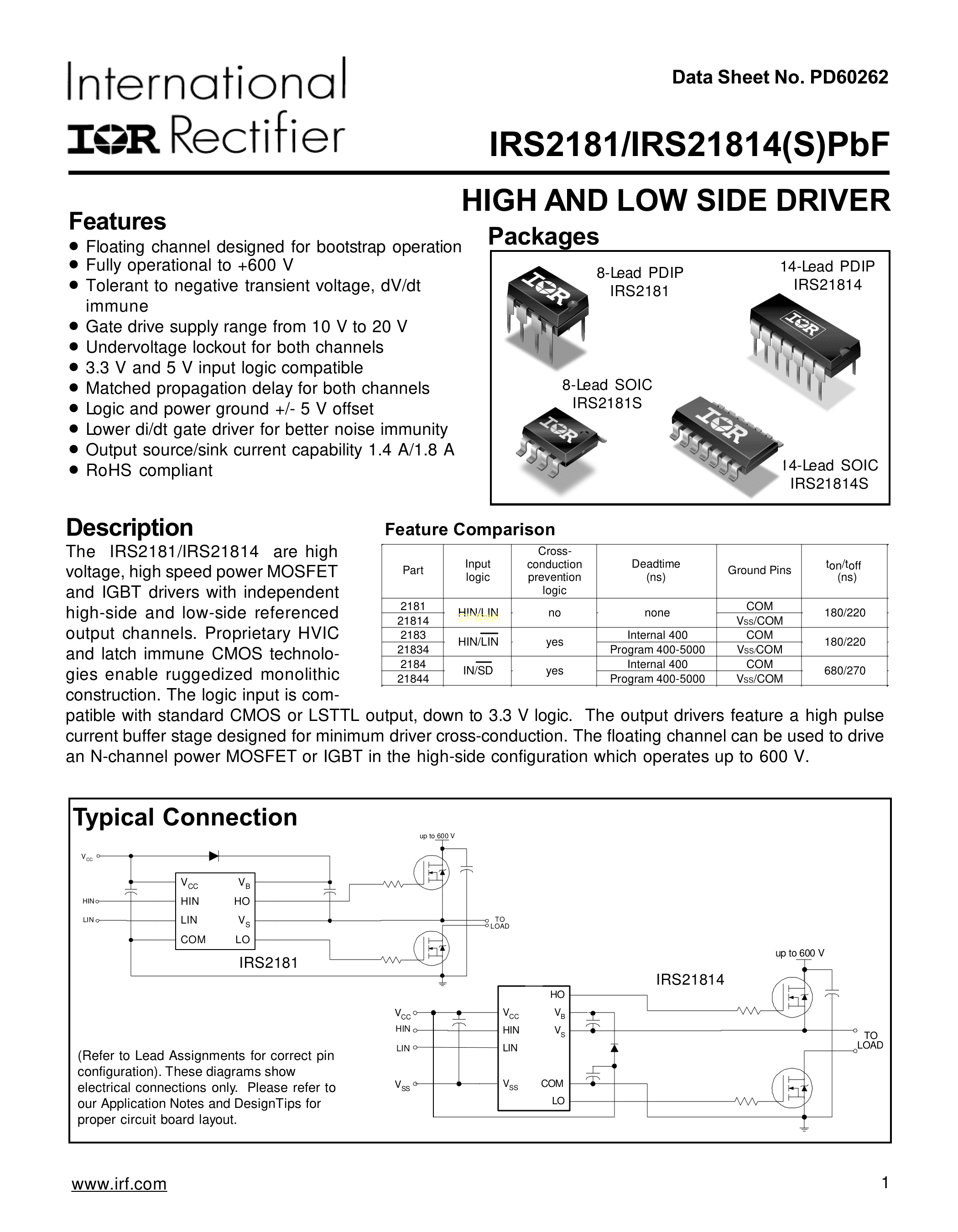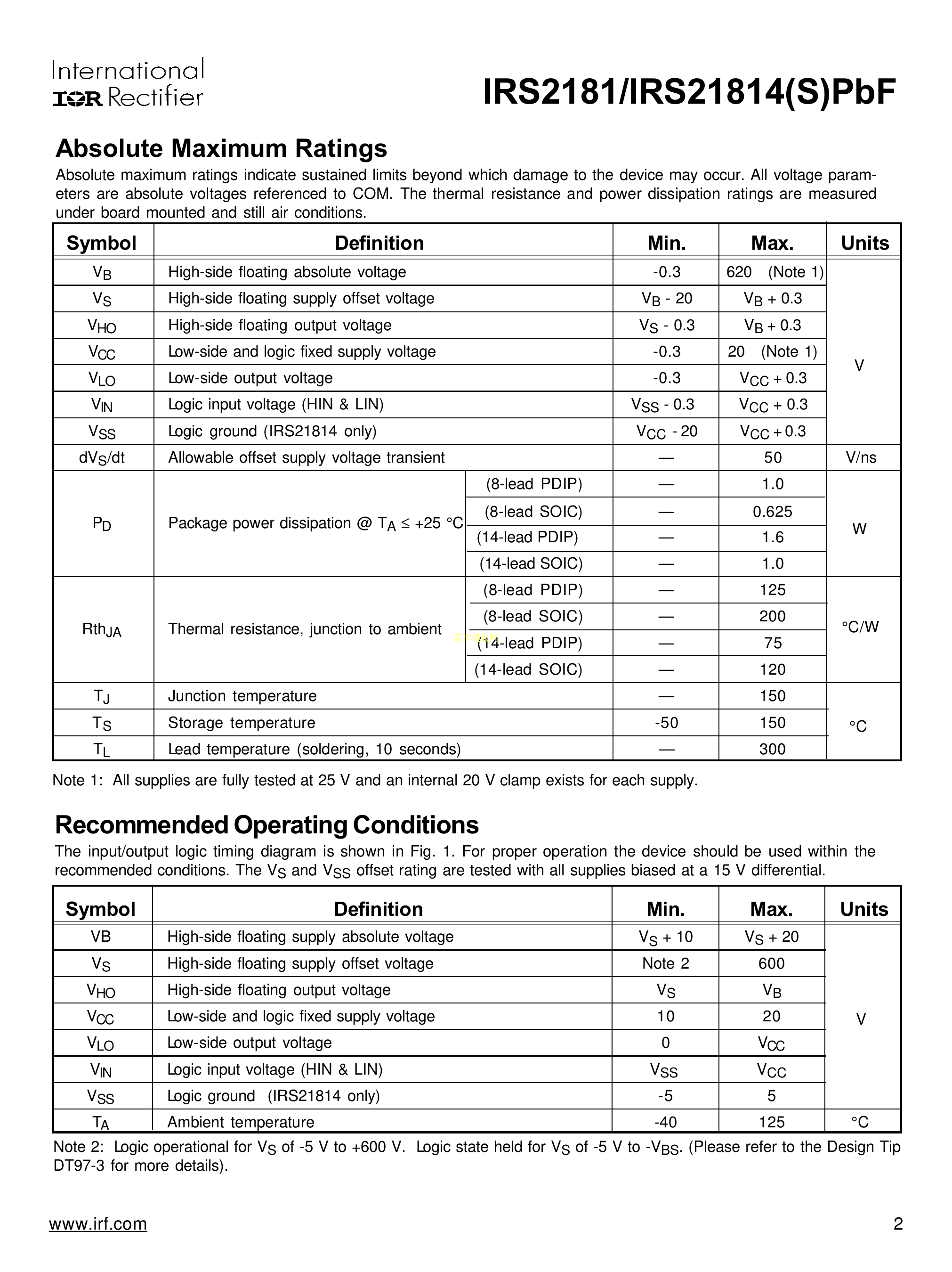 IRS21814SPBF数据手册SOIC-14N封装Infineon(英飞凌)PDF规格书,中英文下