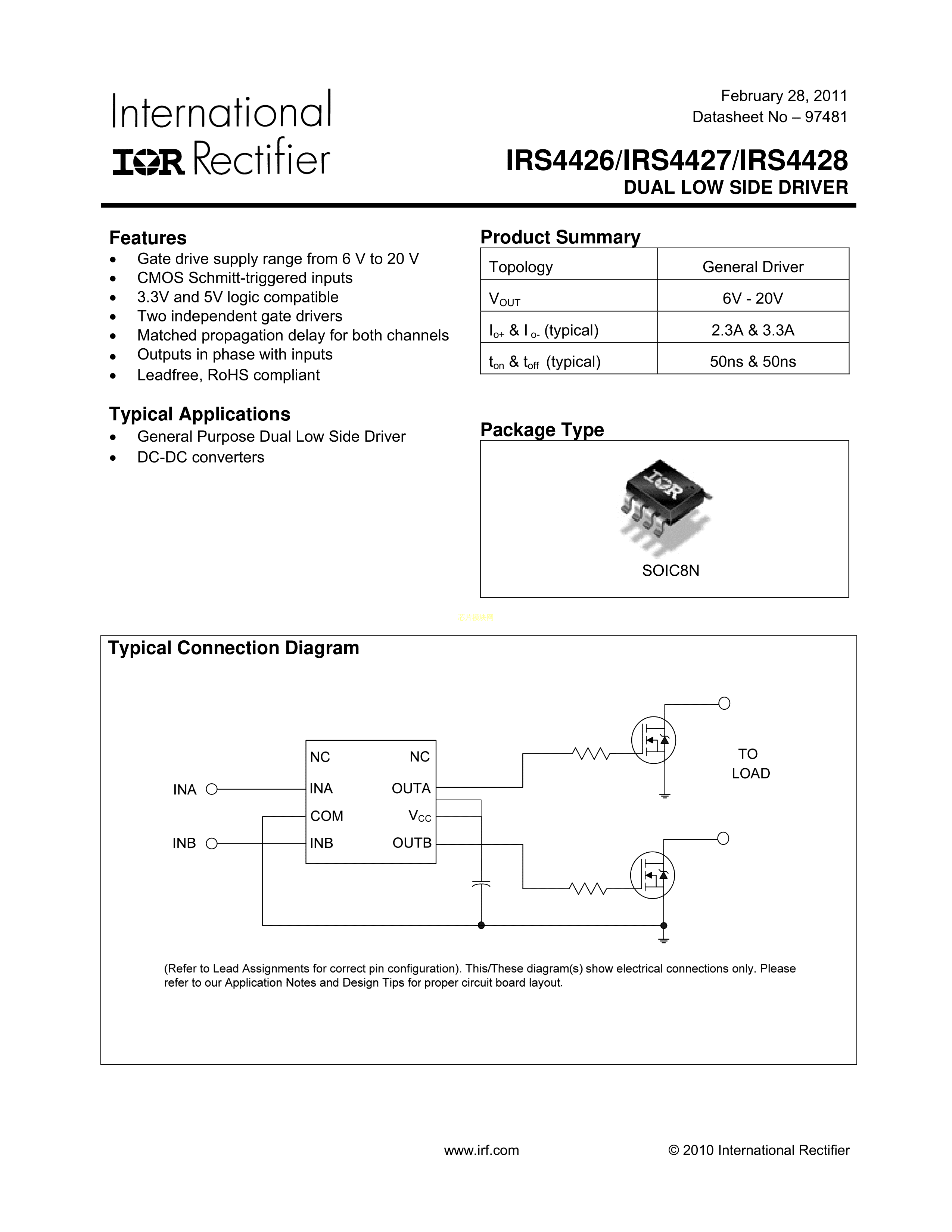 IRS4427STRPBF数据手册SOIC-8_150mil封装Infineon(英飞凌)PDF规格