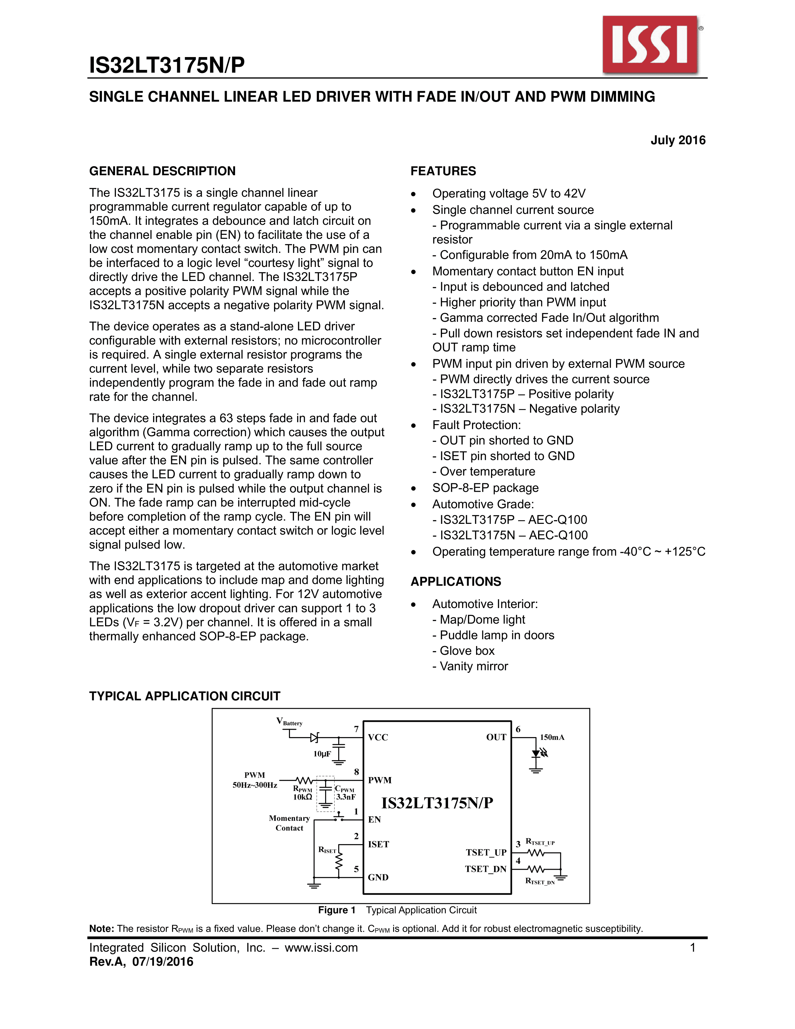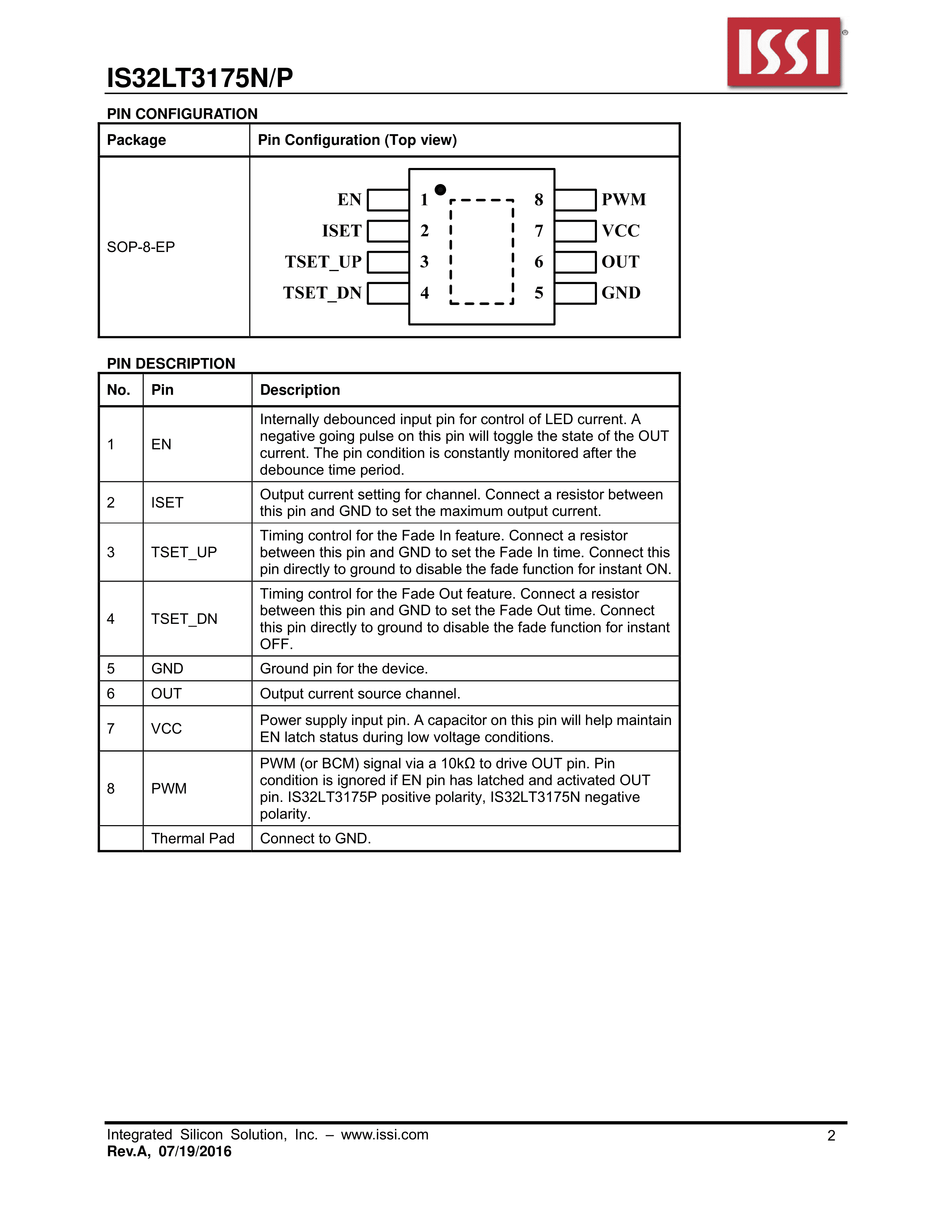IS32LT3175N-GRLA3-TR数据手册SOP-8EP封装Lumissil Microsys