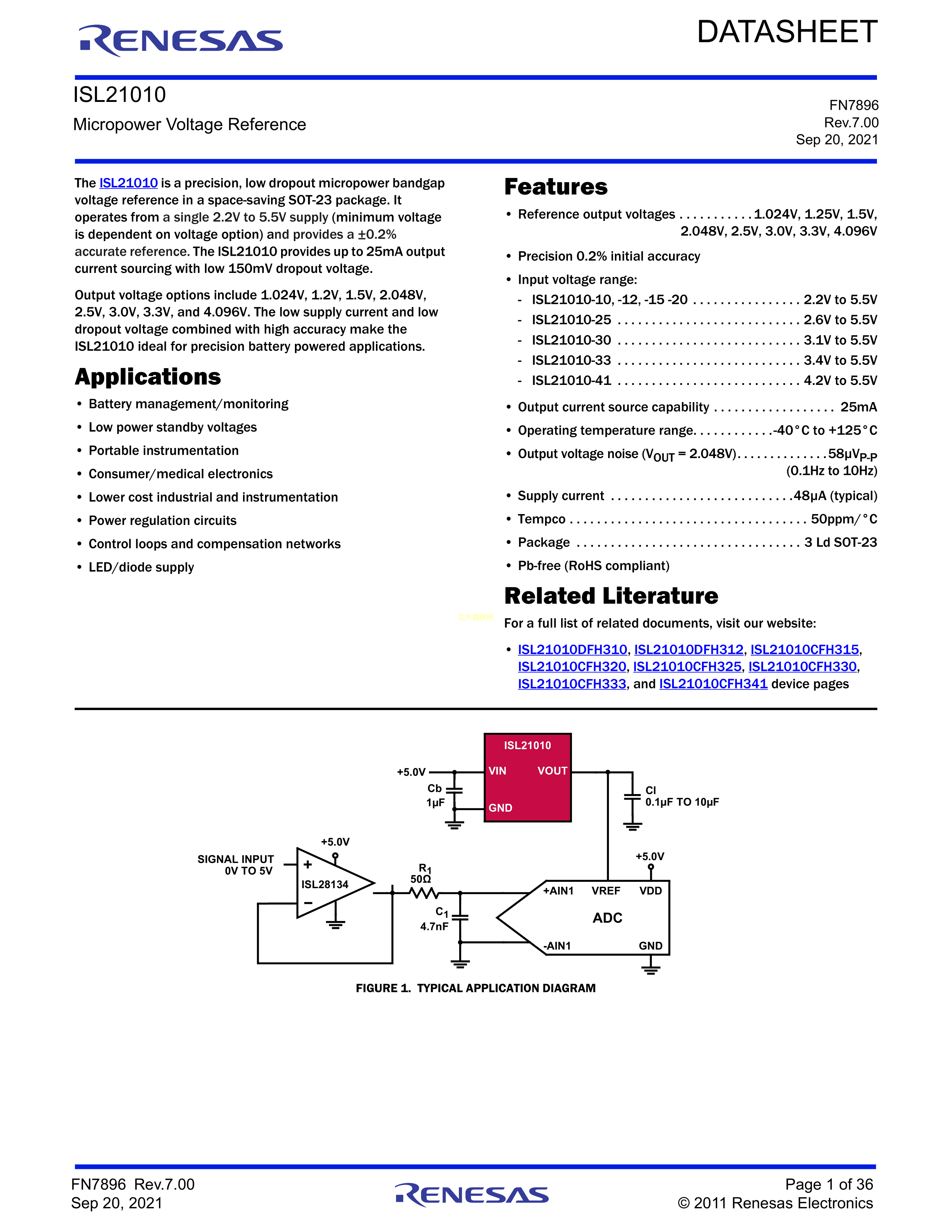 ISL21010DFH312Z-TK数据手册SOT-23-3封装RENESAS(瑞萨)-IDTPDF