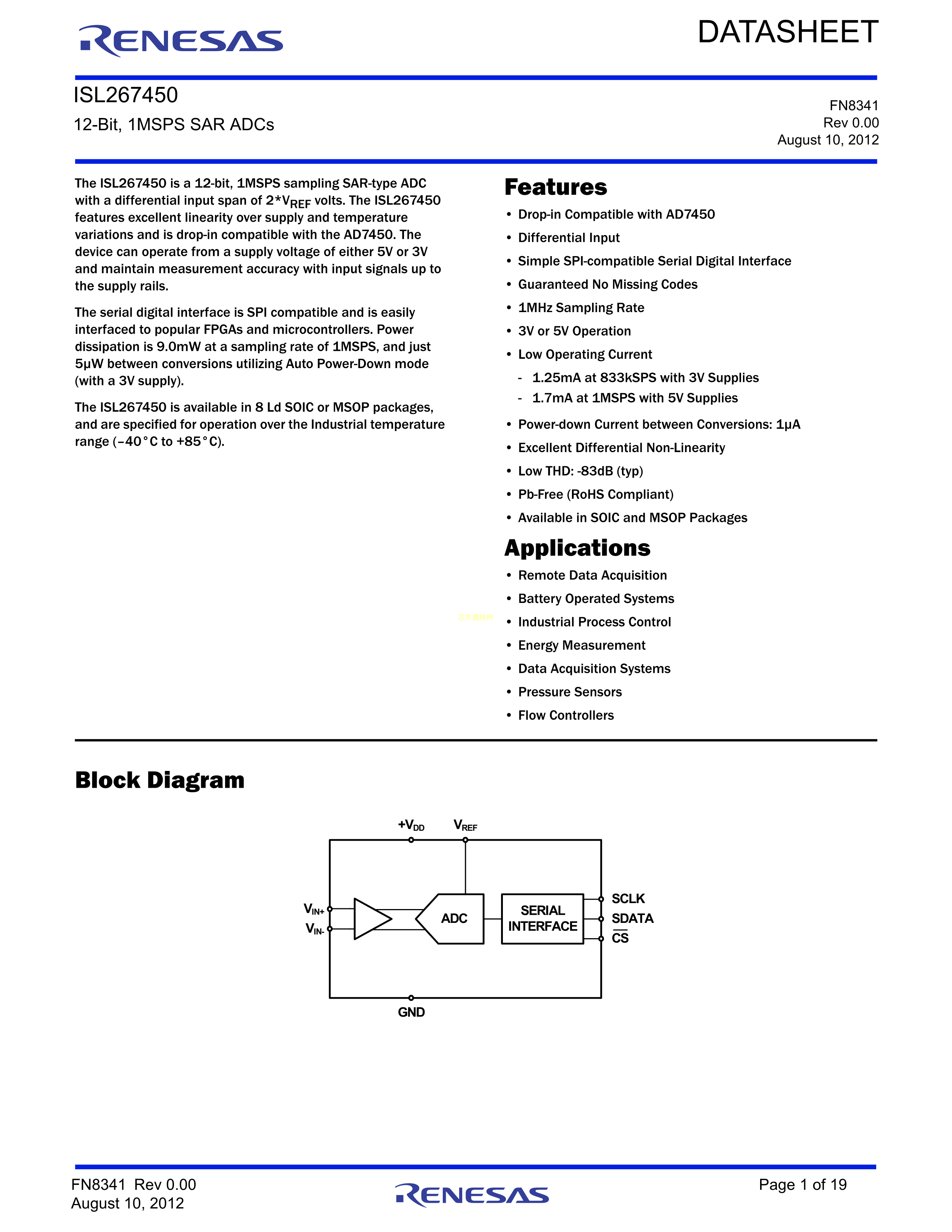 ISL267450IBZ-T7A数据手册SOIC-8封装RENESAS(瑞萨)-IDTPDF规格书,