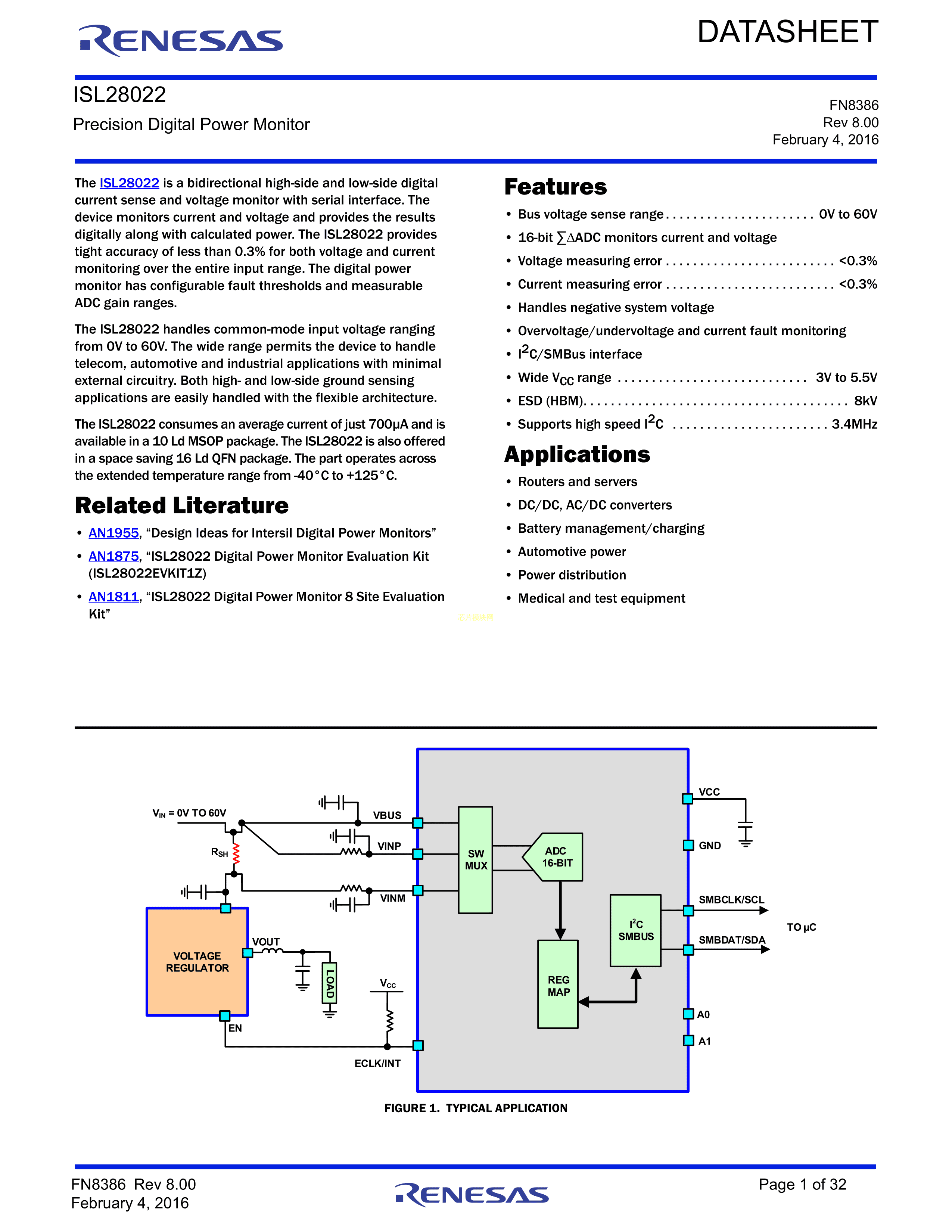 ISL28022FUZ数据手册MSOP-10封装RENESAS(瑞萨)-IDTPDF规格书,中英文下