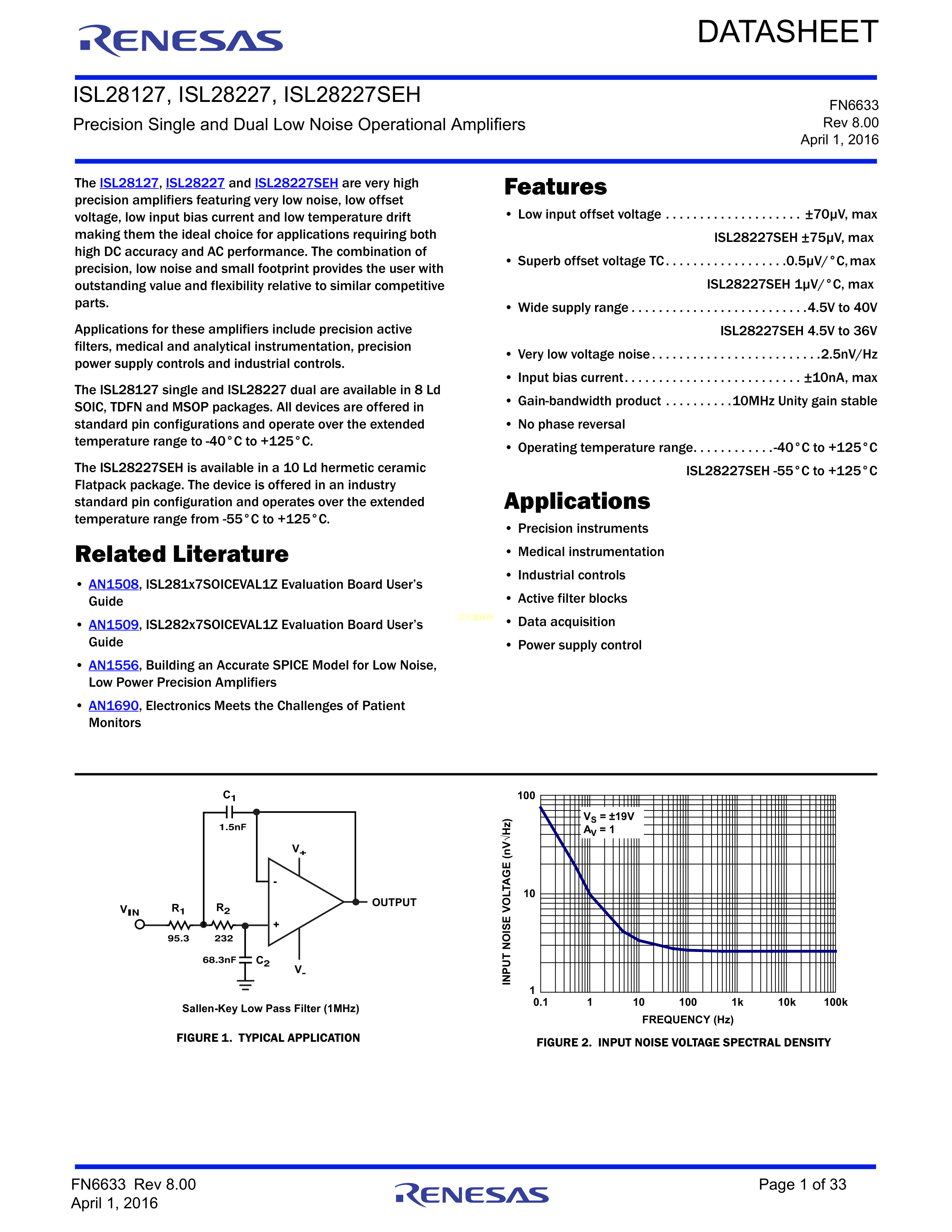ISL28227FUBZ-T7A数据手册MSOP-8封装RENESAS(瑞萨)-IDTPDF规格书,
