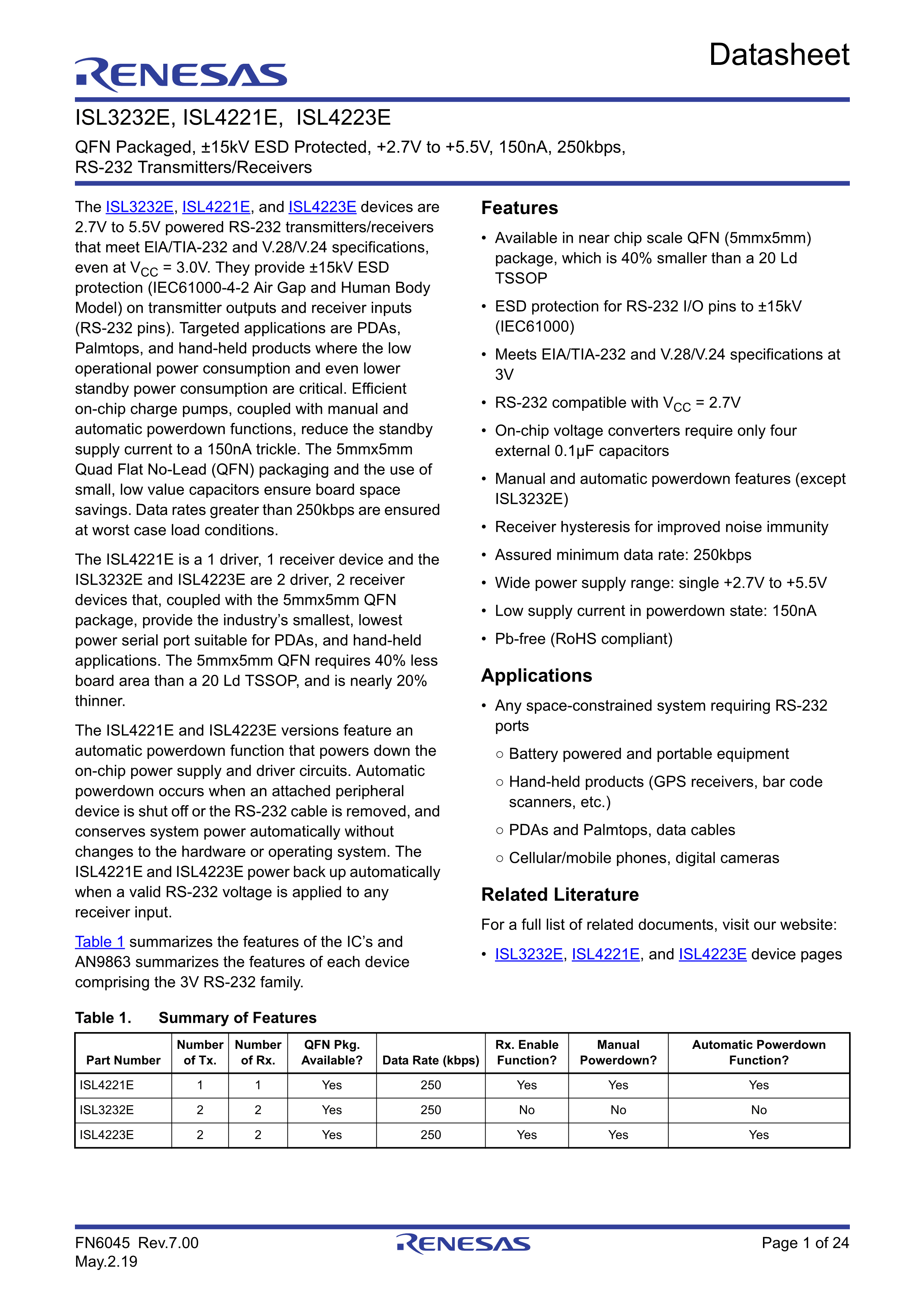 ISL3232EIRZ-T数据手册QFN-16_EP(5x5)封装RENESAS(瑞萨)-IDTPD