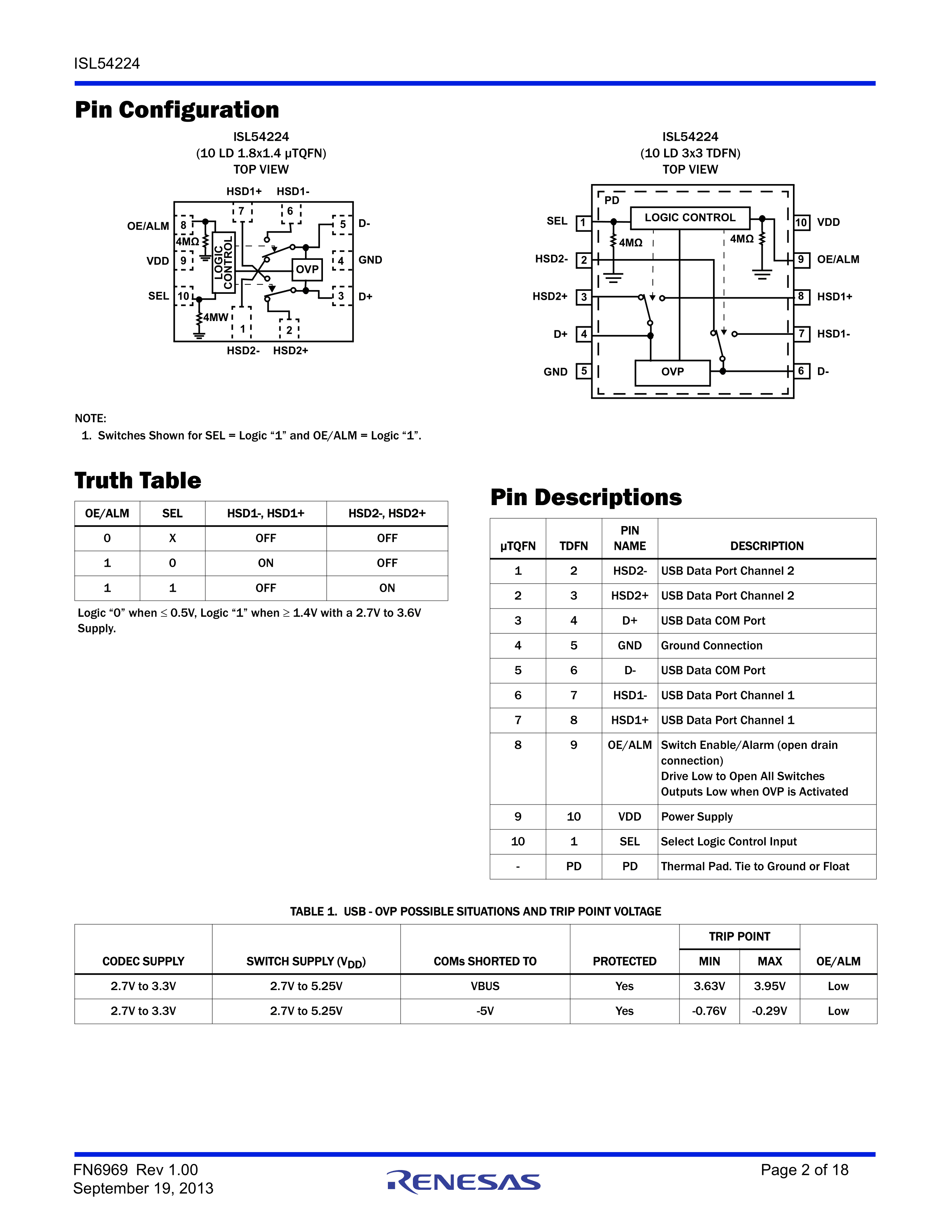ISL54224IRUZ-T7A数据手册UTQFN-10(1.8x1.4)封装RENESAS(瑞萨)