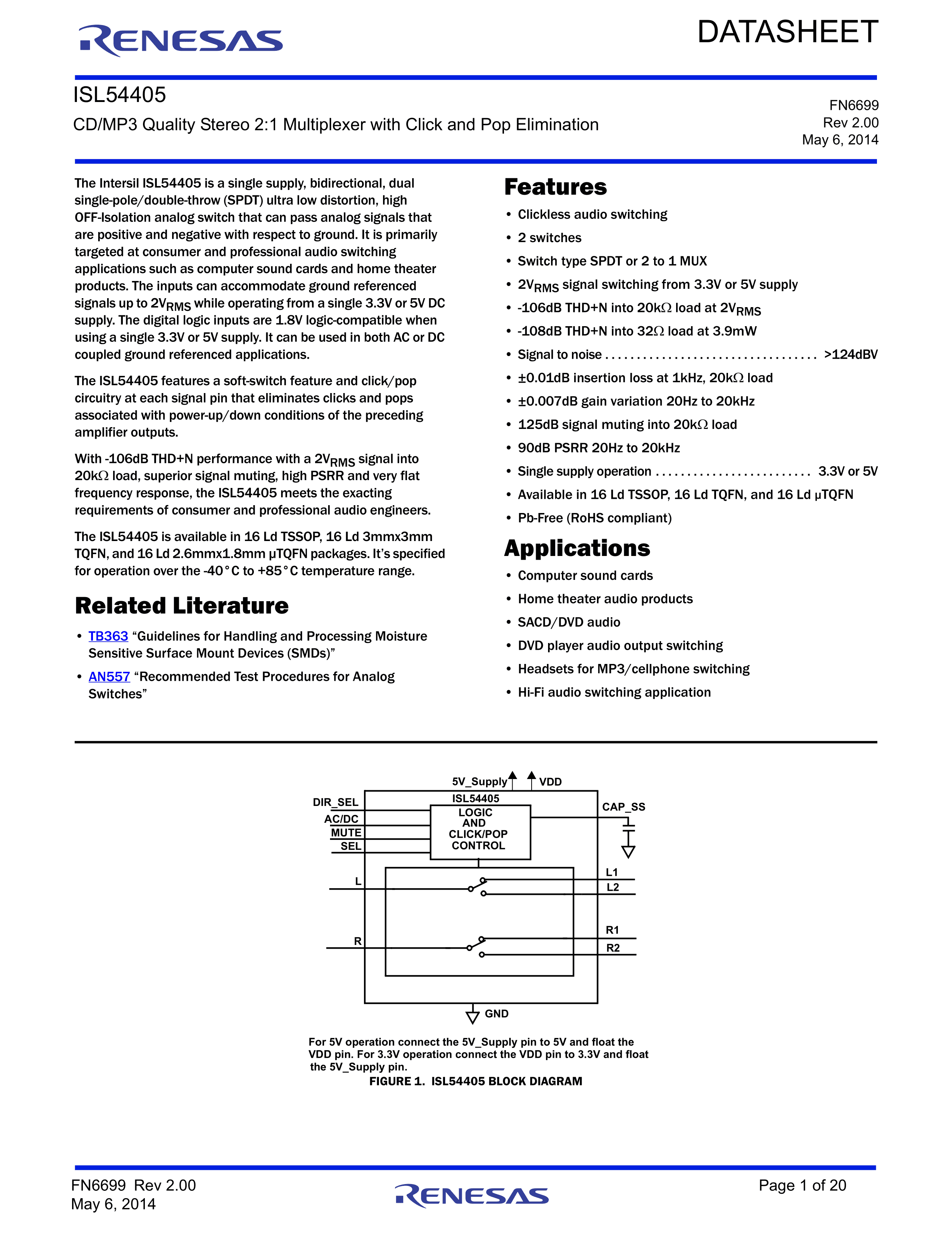 ISL54405IRTZ数据手册TQFN-16(3x3)封装RENESAS(瑞萨)-IDTPDF规格