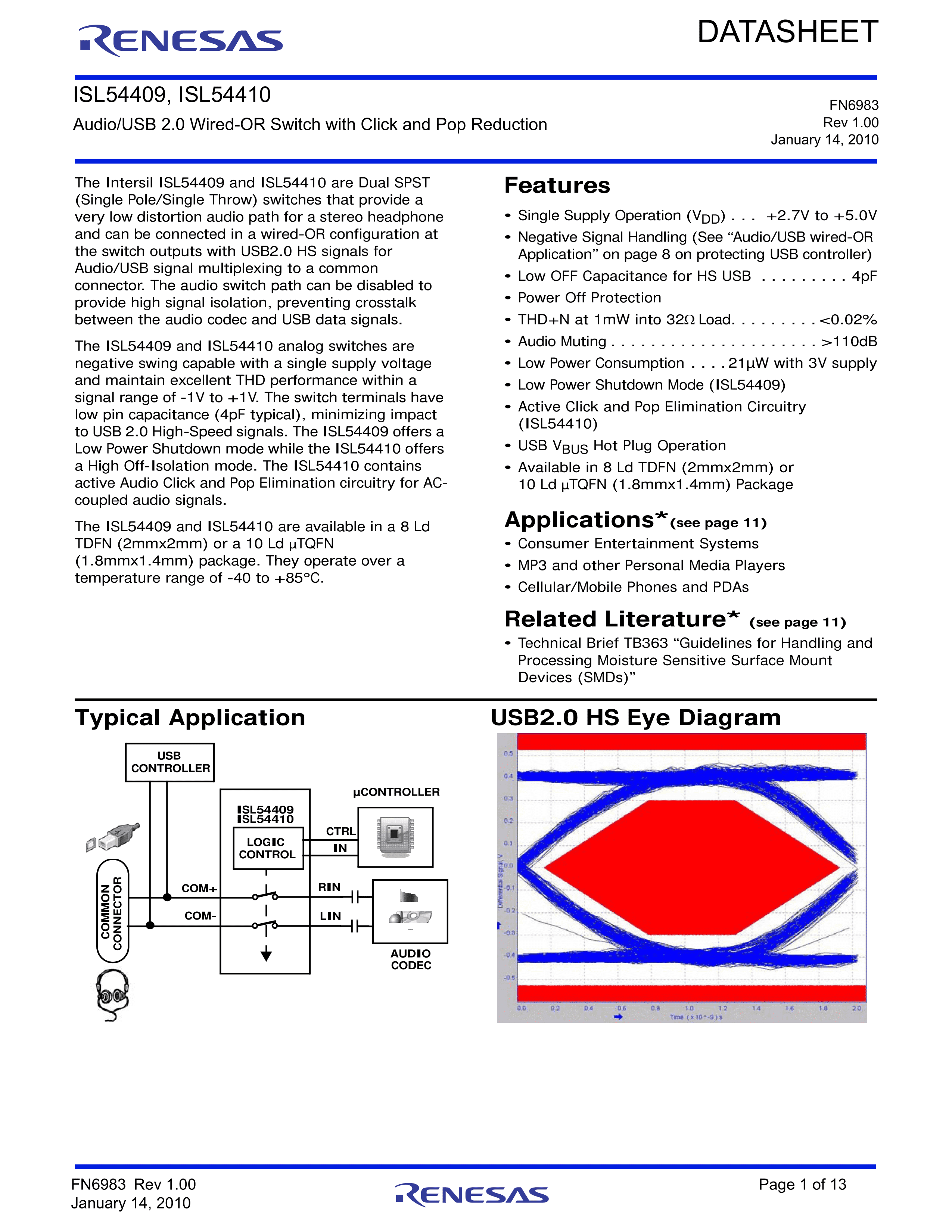 ISL54409IRTZ-T数据手册TDFN-8_EP(2x2)封装RENESAS(瑞萨)-IDTP