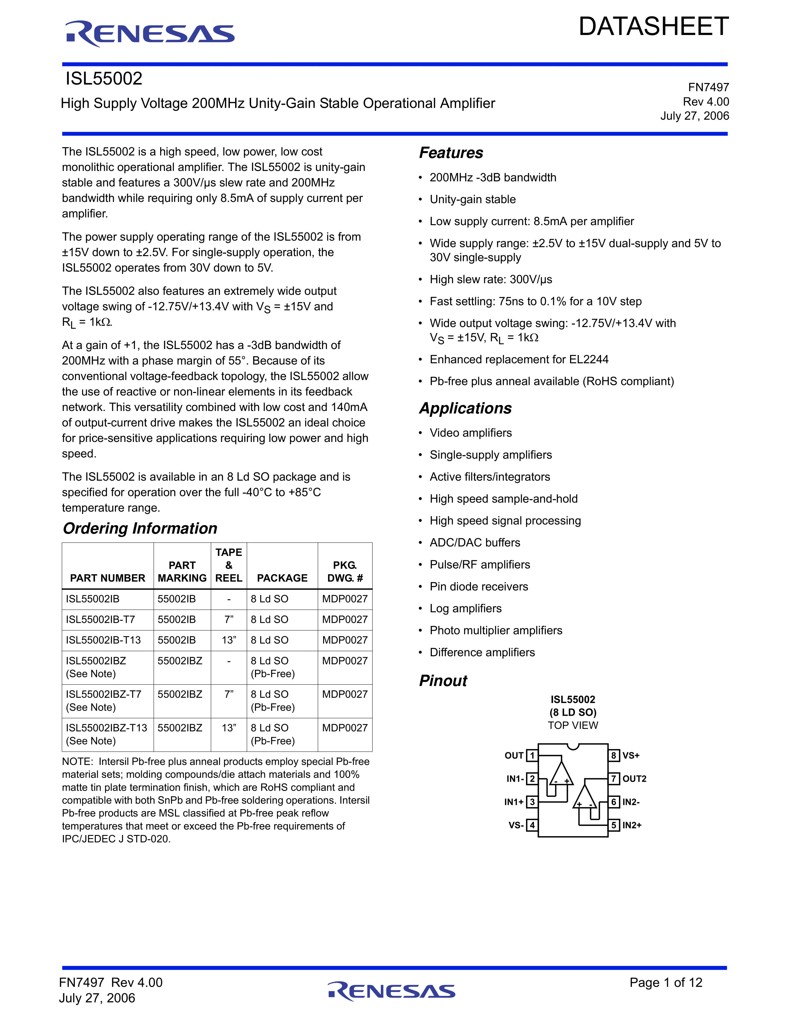 ISL55002IBZ-T13数据手册SOIC-8封装RENESAS(瑞萨)-IDTPDF规格书,中