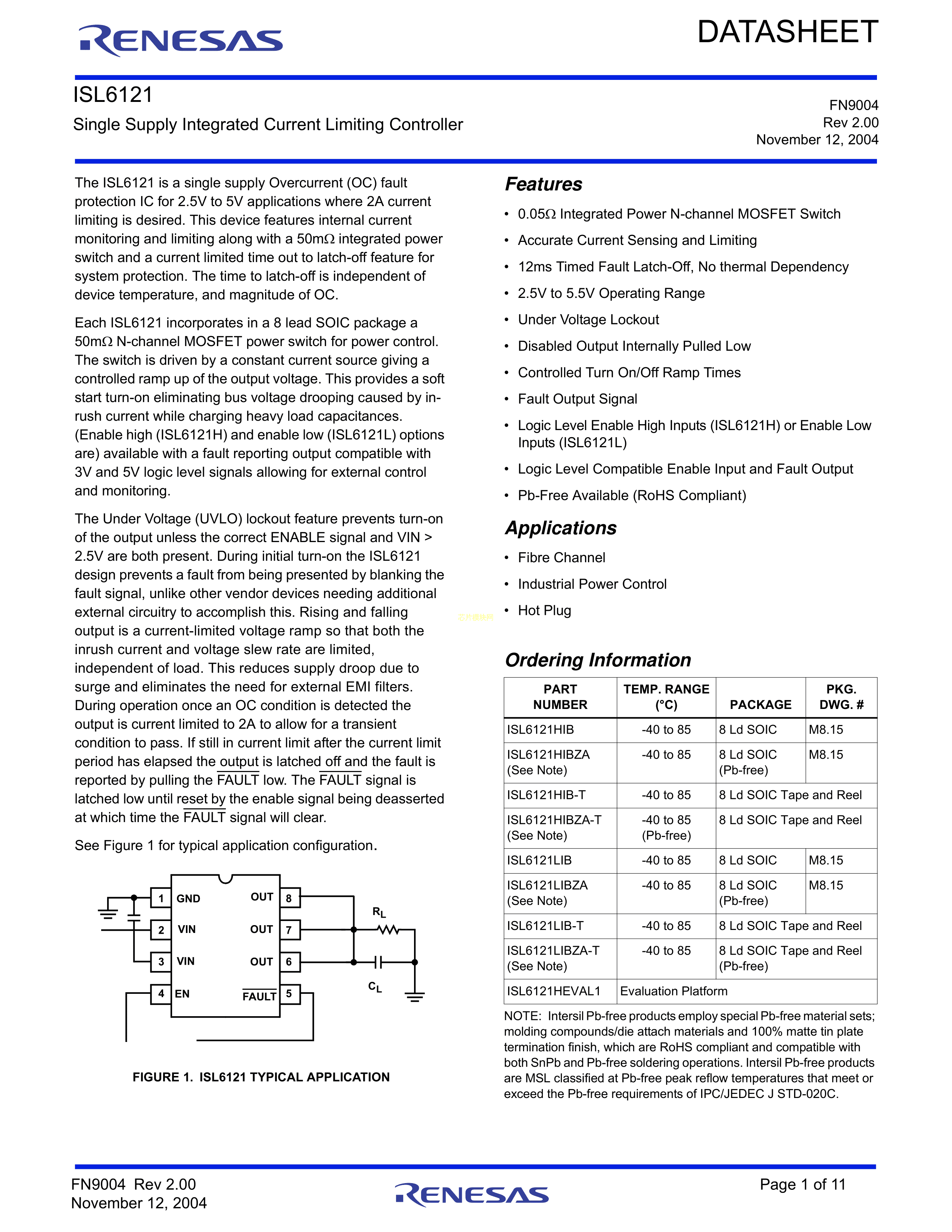 ISL6121HIBZA-T数据手册SOIC-8封装RENESAS(瑞萨)-IDTPDF规格书,中英