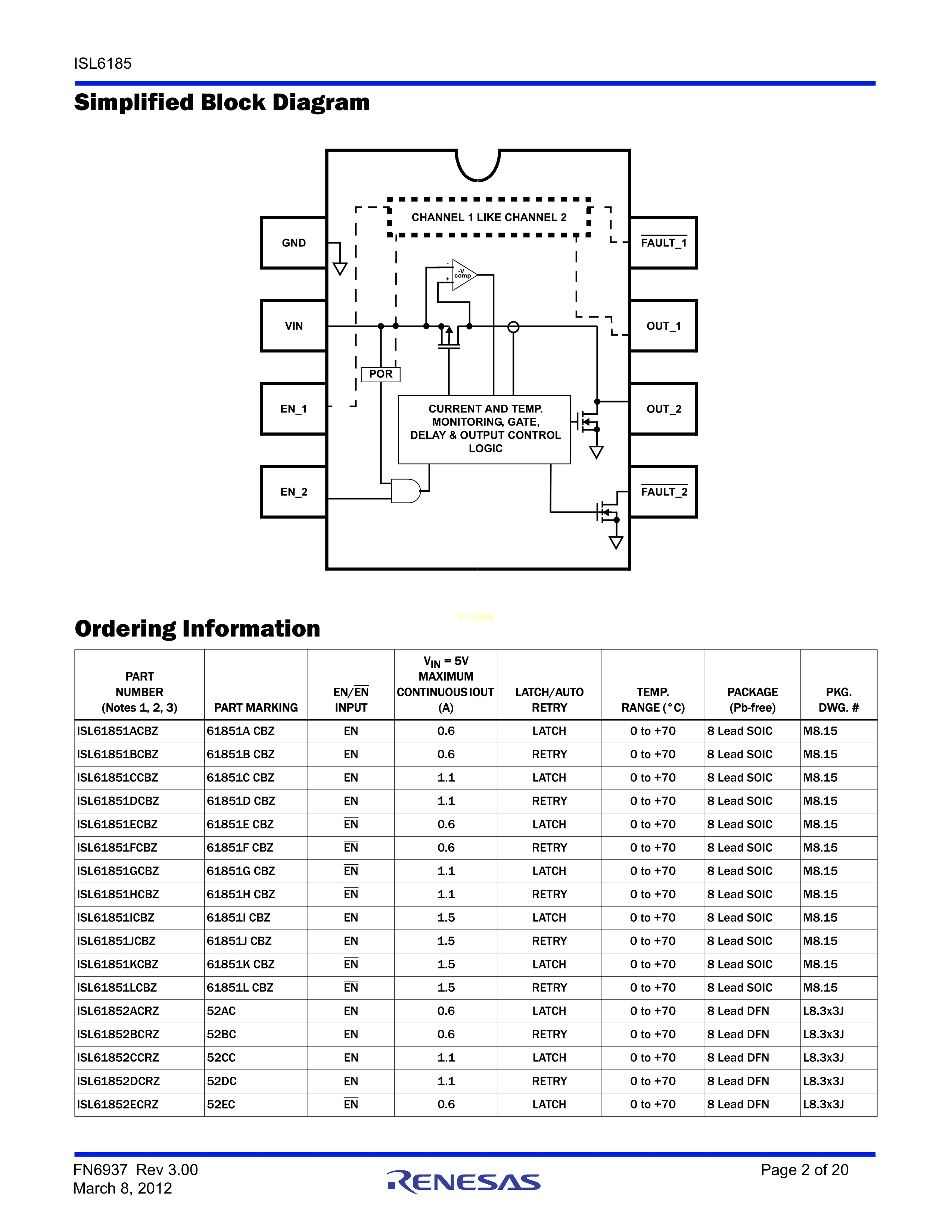 ISL61852ICRZ-T数据手册DFN-8(3x3)封装RENESAS(瑞萨)-IDTPDF规格