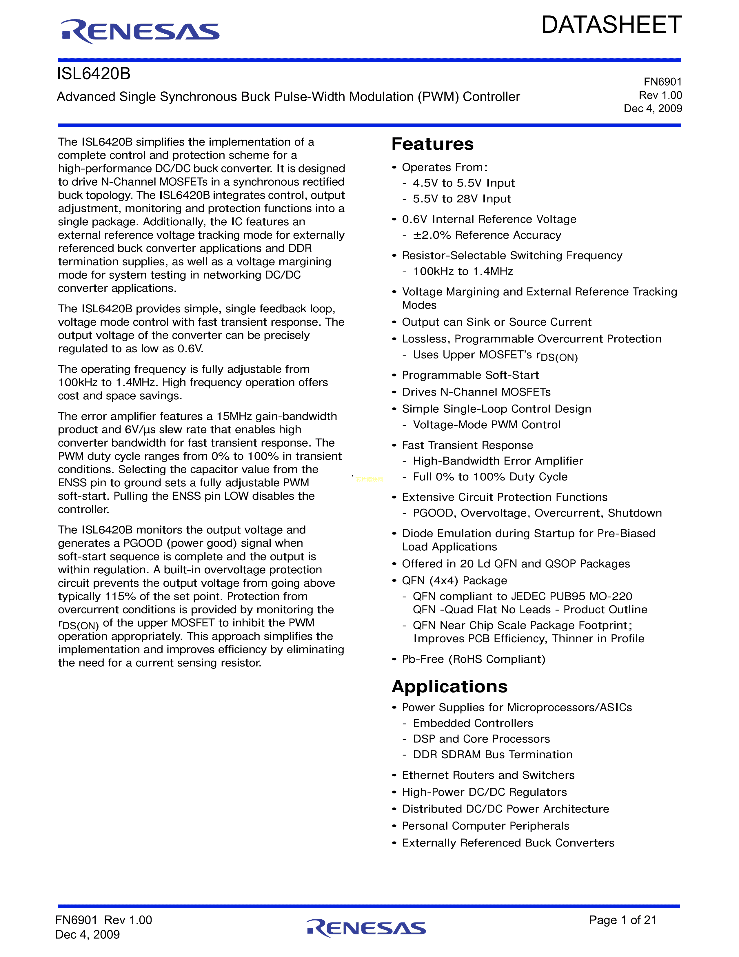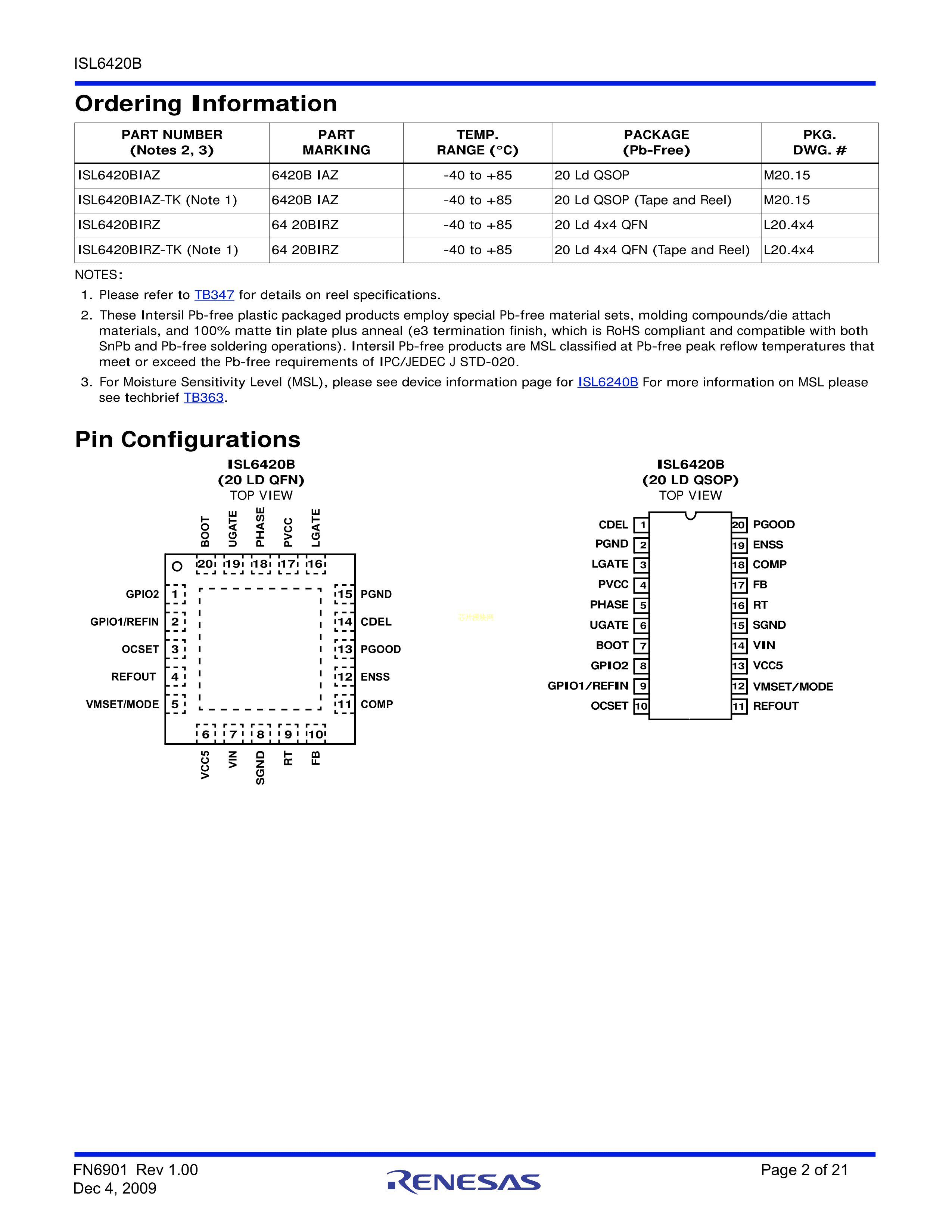 ISL6420BIAZ-T7A数据手册QSOP-20封装RENESAS(瑞萨)-IDTPDF规格书,中英文下载