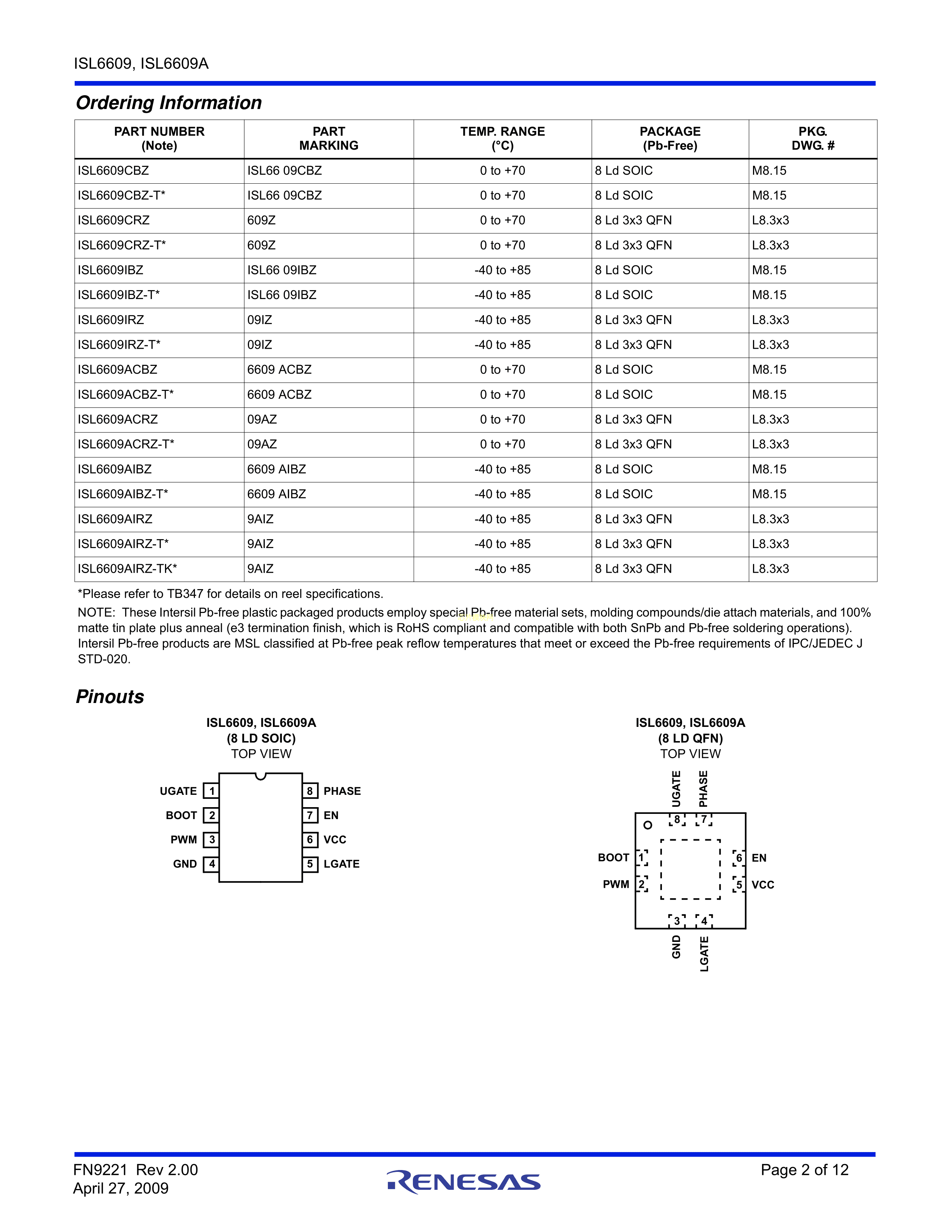 ISL6609ACBZ数据手册SOIC-8封装RENESAS(瑞萨)-IDTPDF规格书,中英文下载