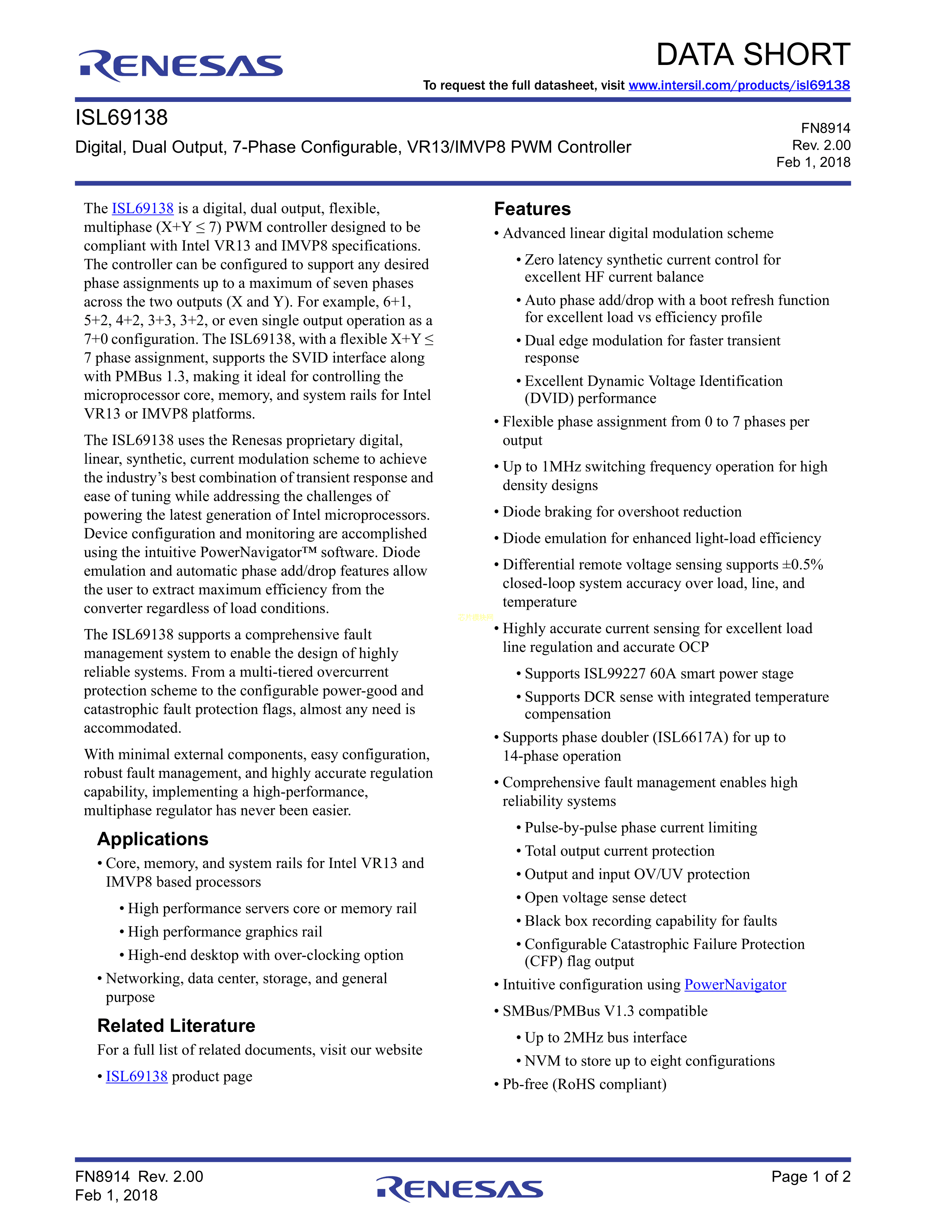 ISL69138IRAZ-T数据手册-封装RENESAS(瑞萨)-IDTPDF规格书,中英文下载