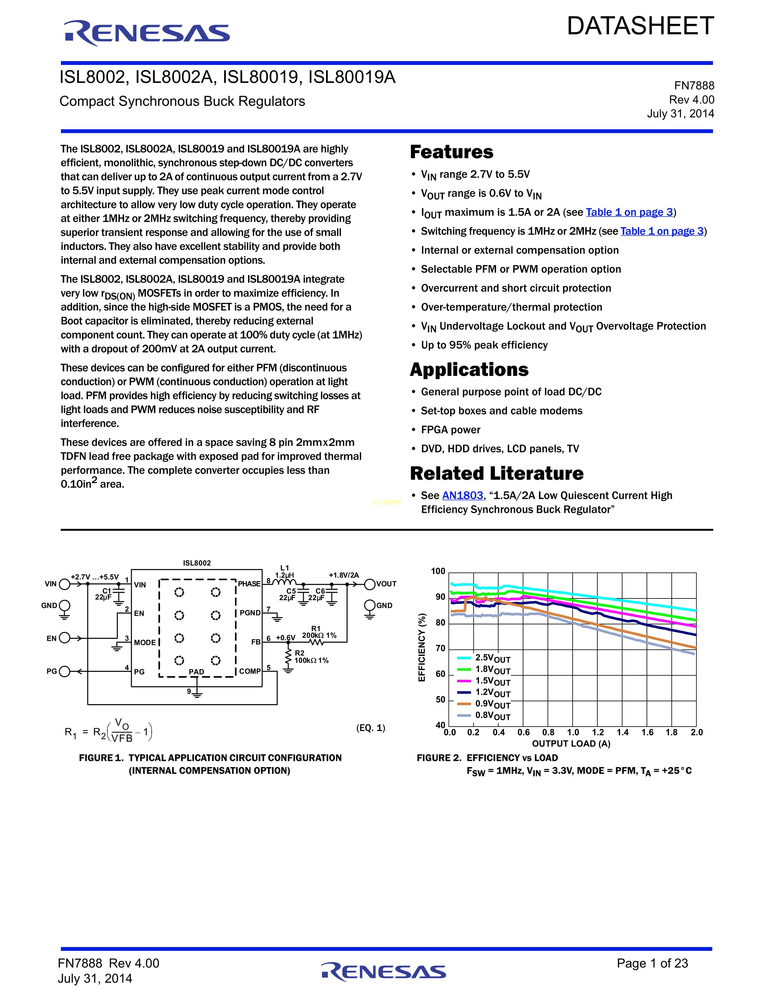 ISL8002IRZ-T7A数据手册TDFN-8_EP(2x2)封装RENESAS(瑞萨)-IDTP