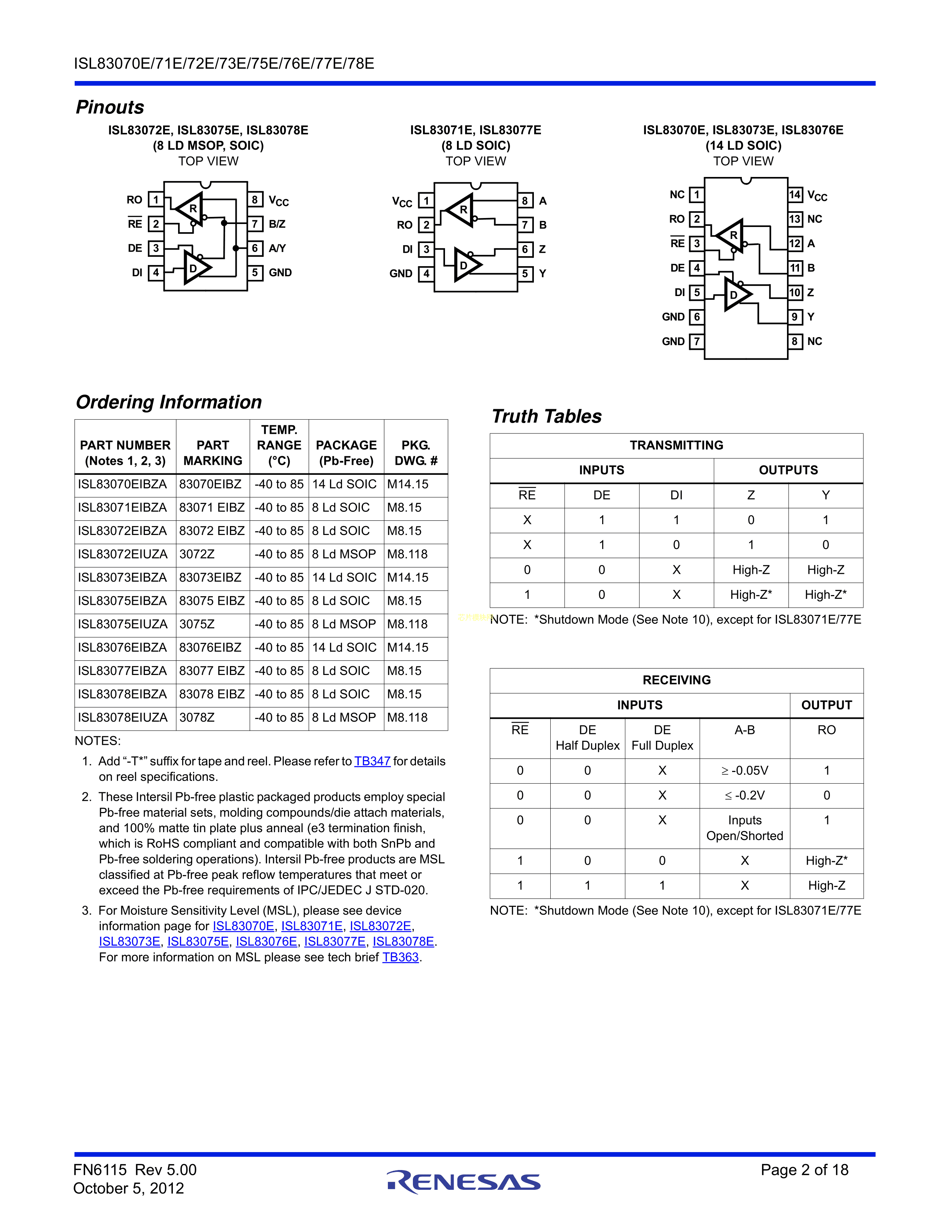ISL83076EIBZA-T数据手册SOIC-14_150mil封装RENESAS(瑞萨)-IDT