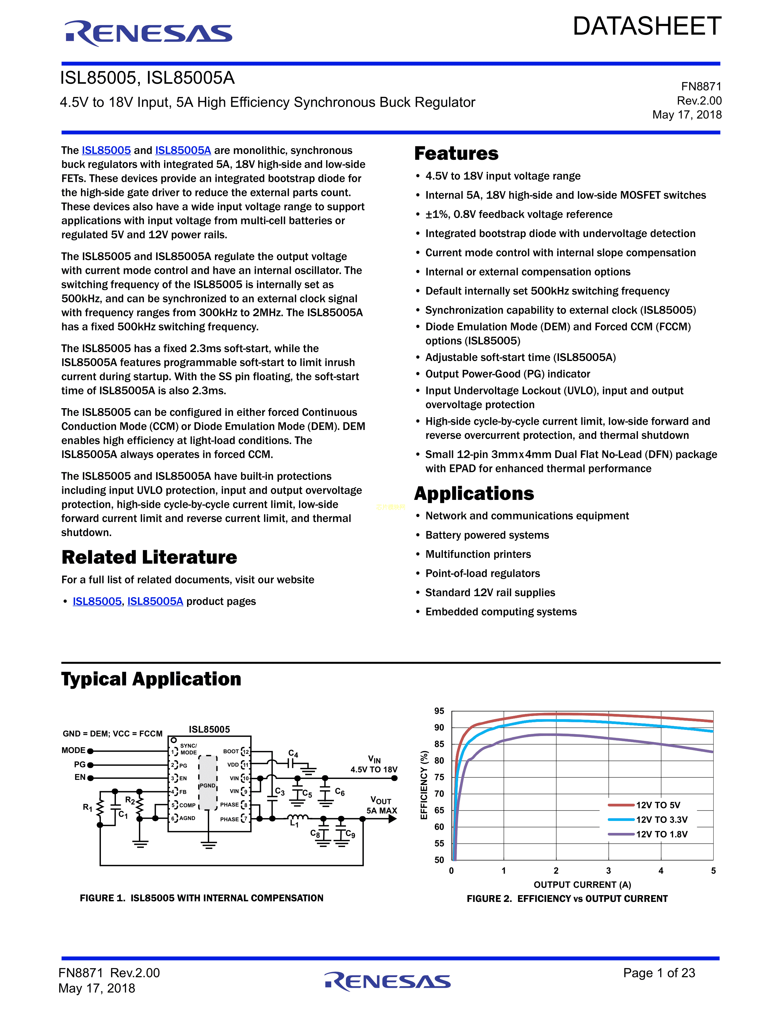 ISL85005AFRZ数据手册DFN-12(4x3)封装RENESAS(瑞萨)-IDTPDF规格书,中英文下载