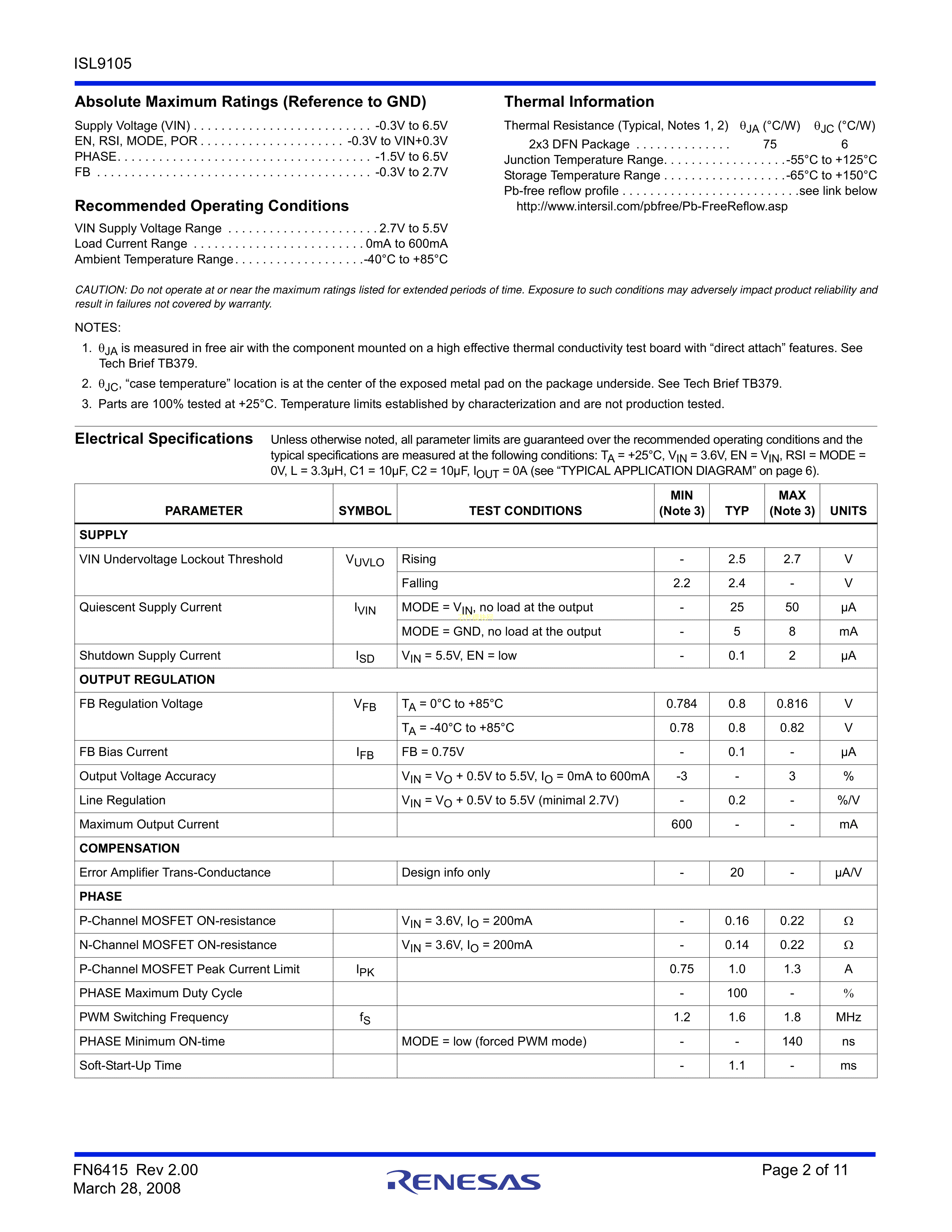 ISL9104AIRUDZ-T数据手册UTDFN-6(1.6x1.6)封装RENESAS(瑞萨)-I