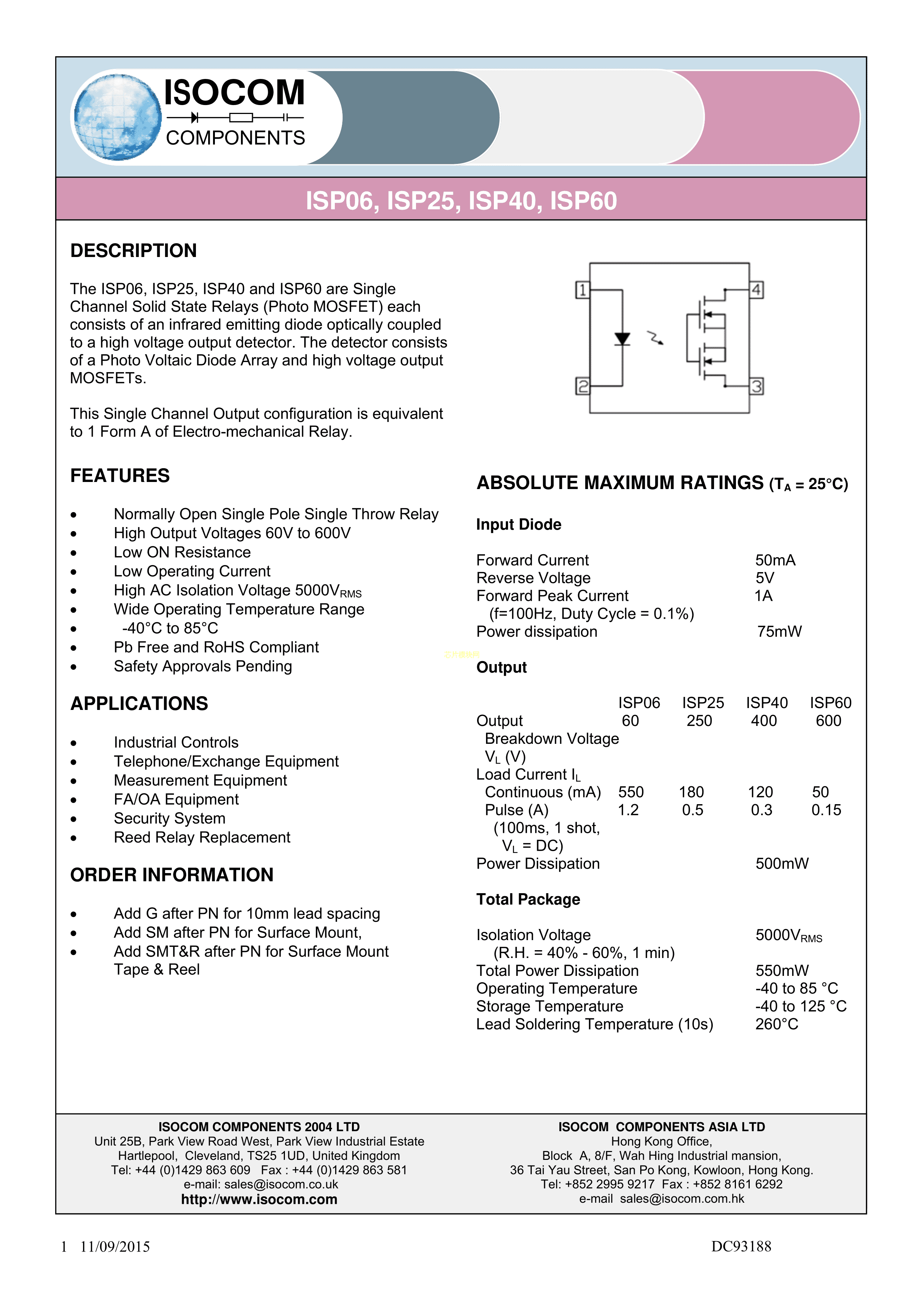 ISP60SMTR数据手册SMD-4封装ISOCOM(英国安数光)PDF规格书,中英文下载
