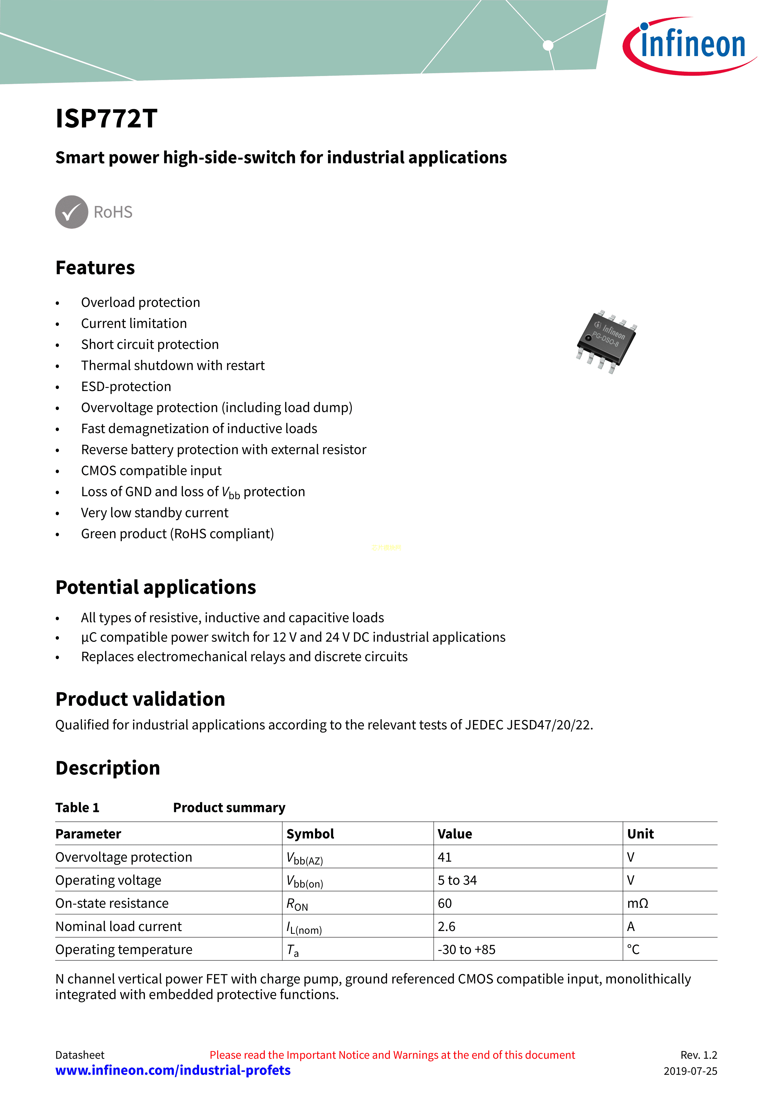 ISP772TFUMA1数据手册PG-DSO-8封装Infineon(英飞凌)PDF规格书,中英文下载