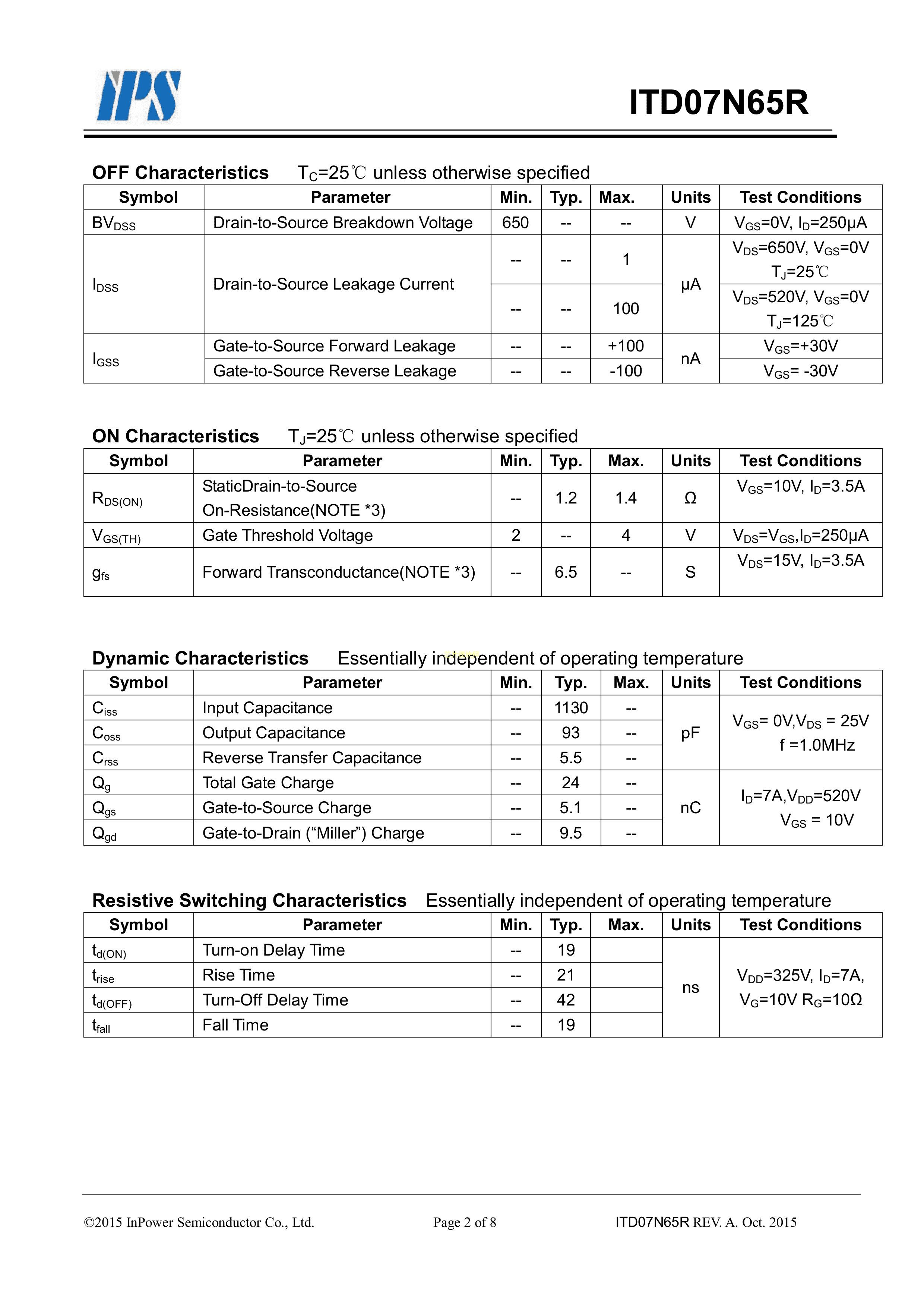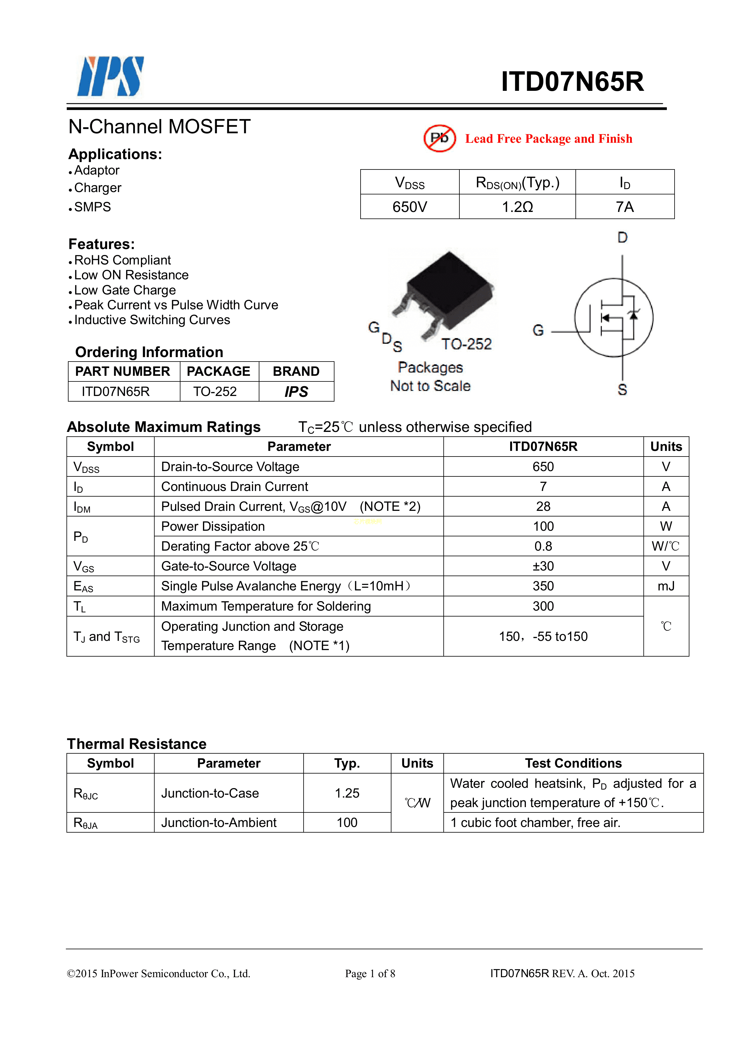 ITD07N65R数据手册TO-252封装CRMICRO(华润微)PDF规格书,中英文下载