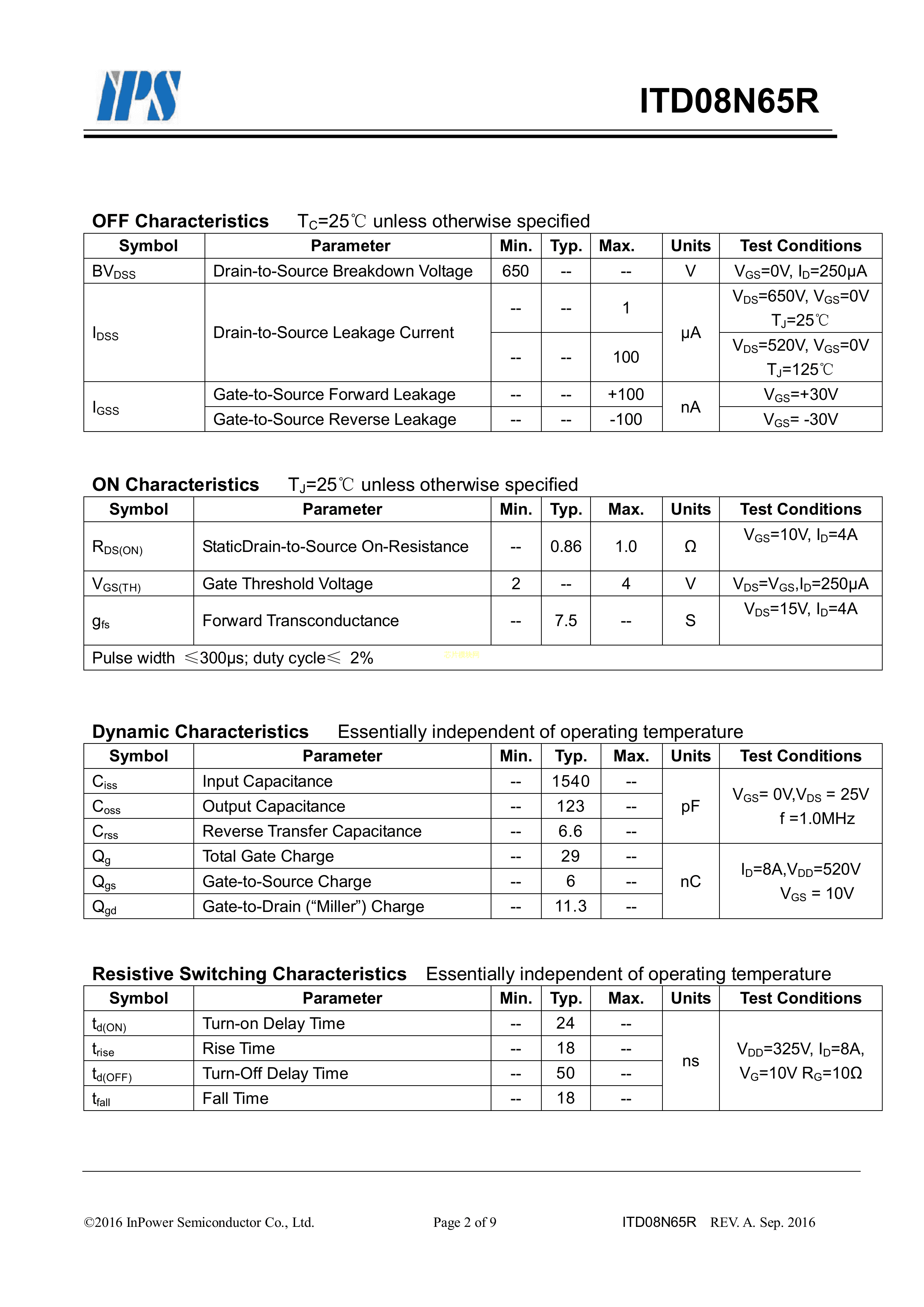 ITD08N65R数据手册TO-252封装CRMICRO(华润微)PDF规格书,中英文下载