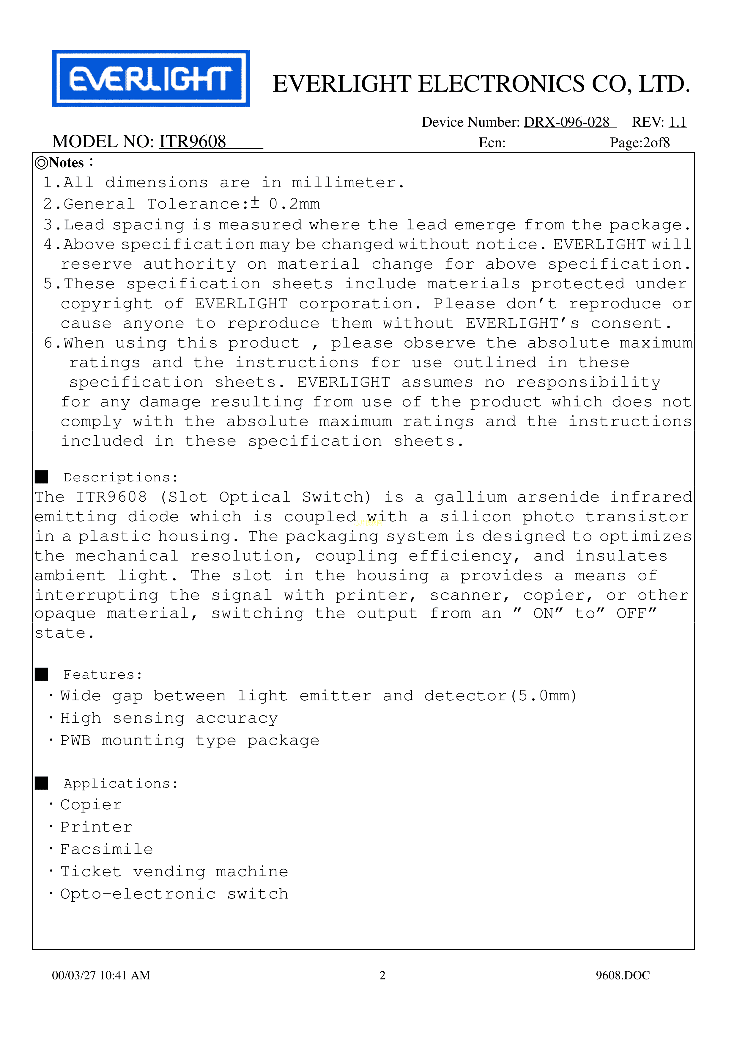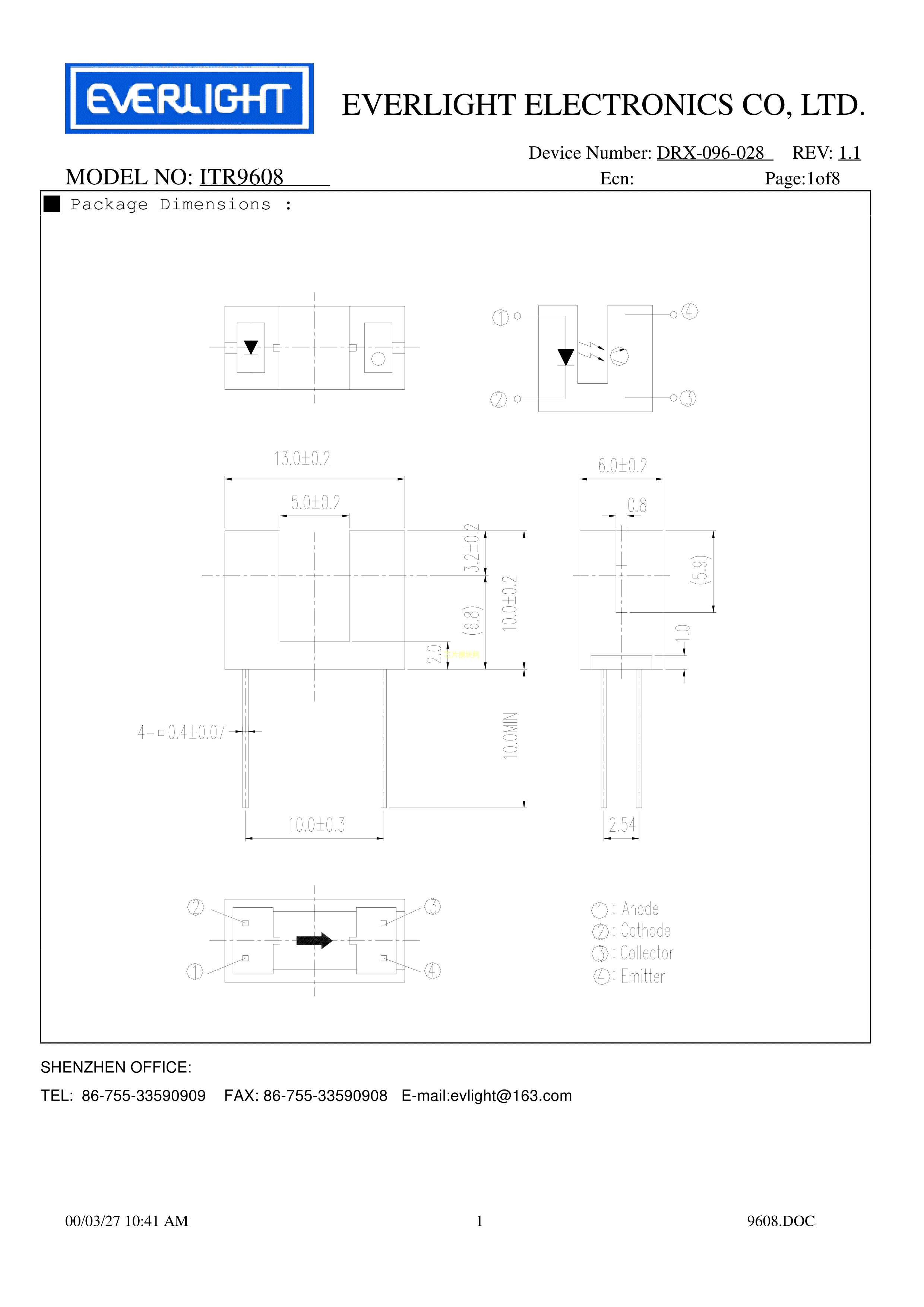 ITR9608数据手册ThroughHole封装EVERLIGHT(台湾亿光)PDF规格书,中英文下载