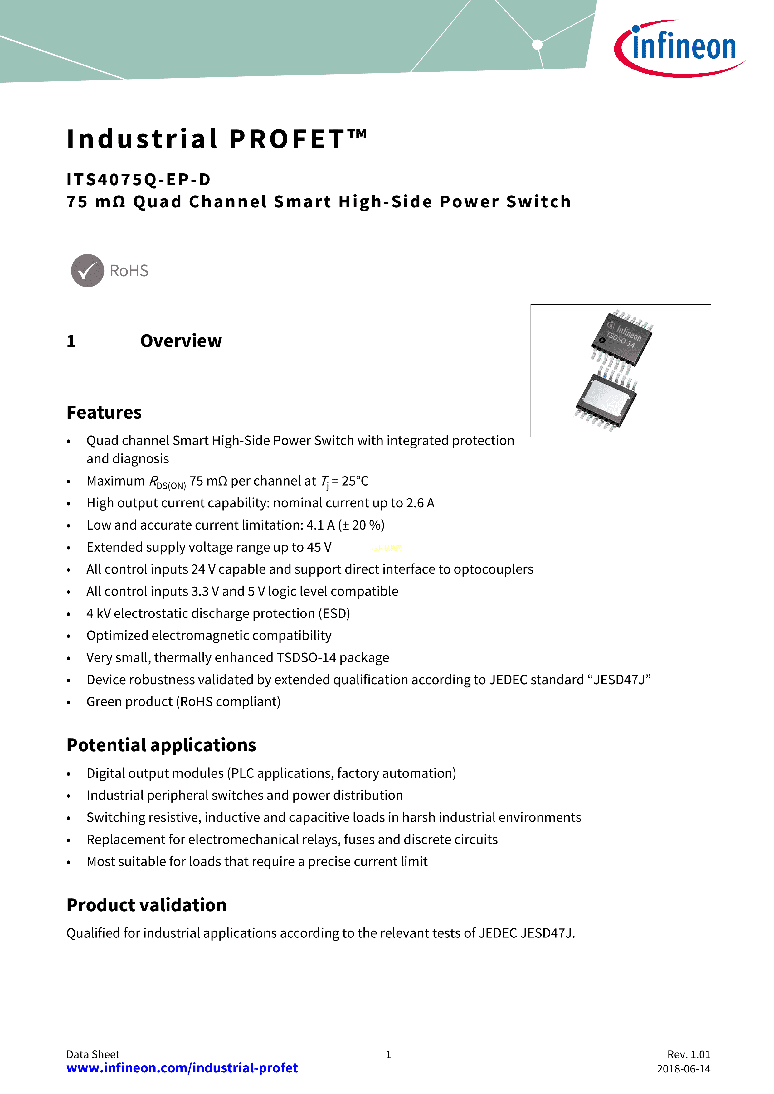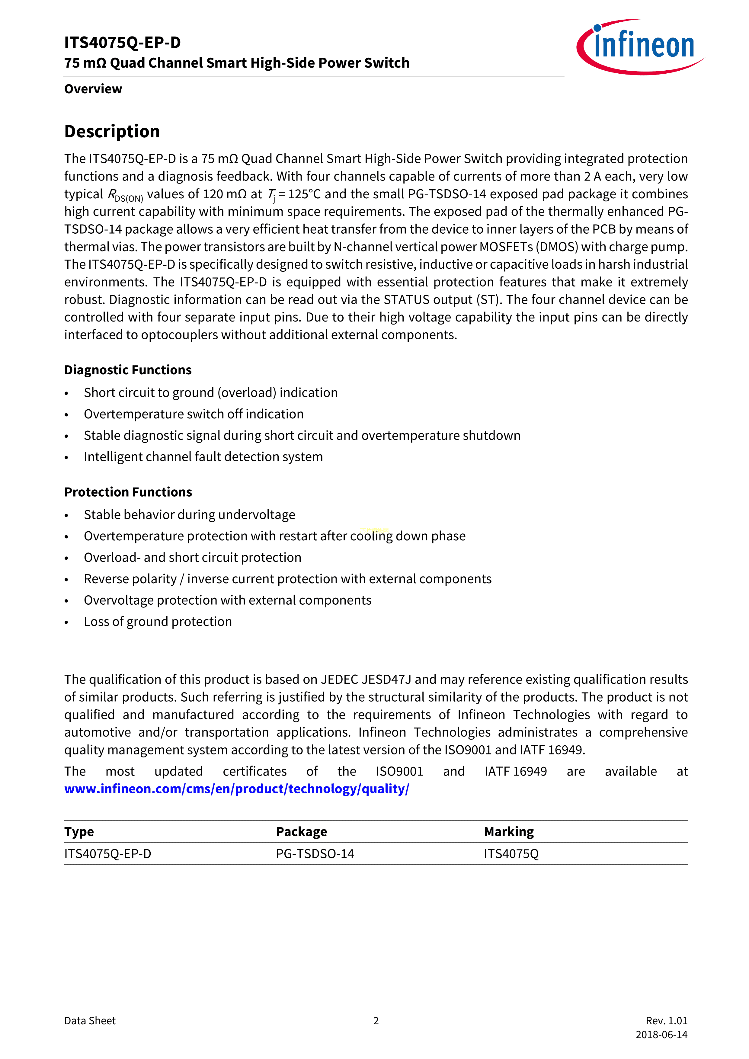 ITS4075Q-EP-D数据手册PG-TSDSO-14封装Infineon(英飞凌)PDF规格书,