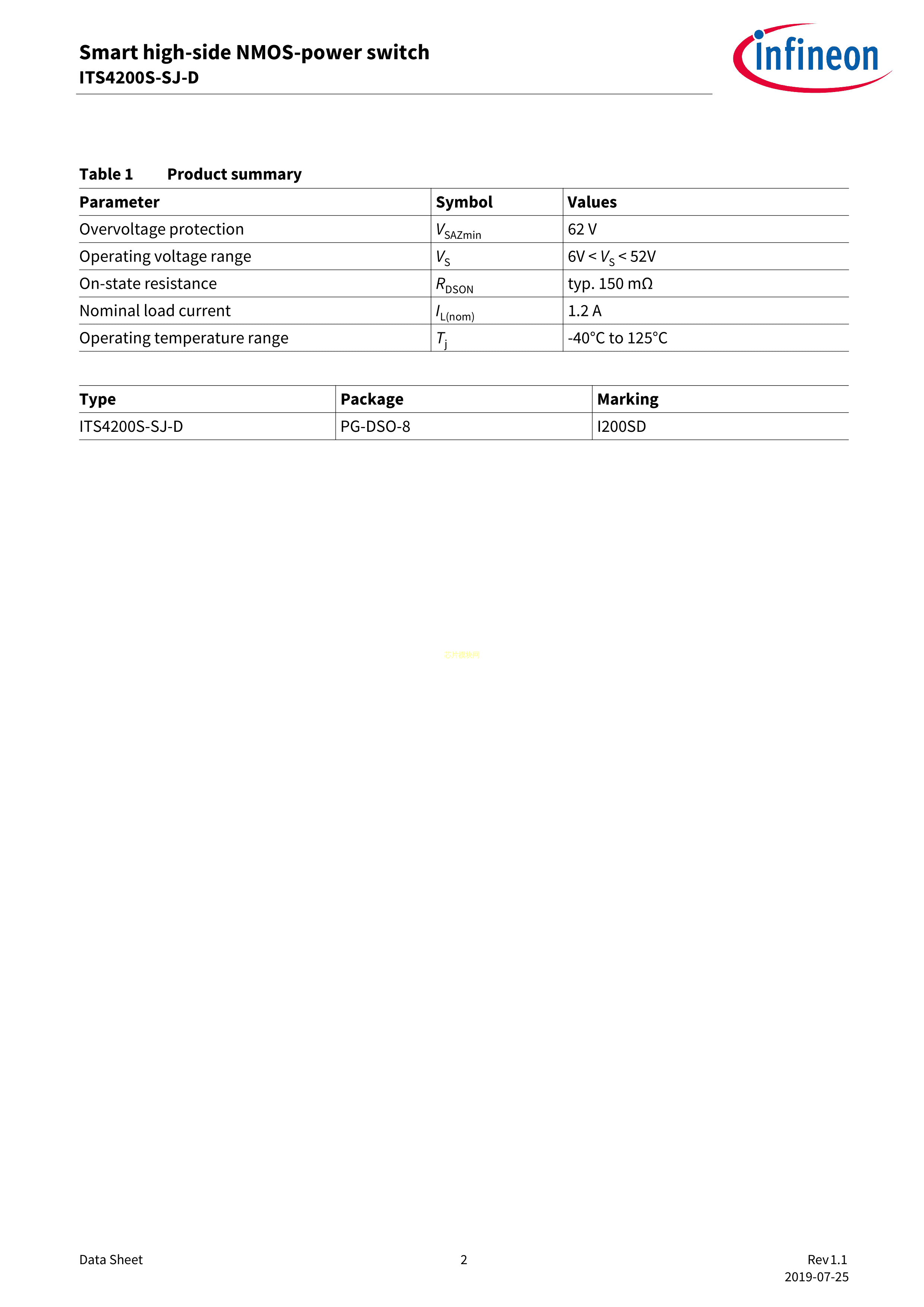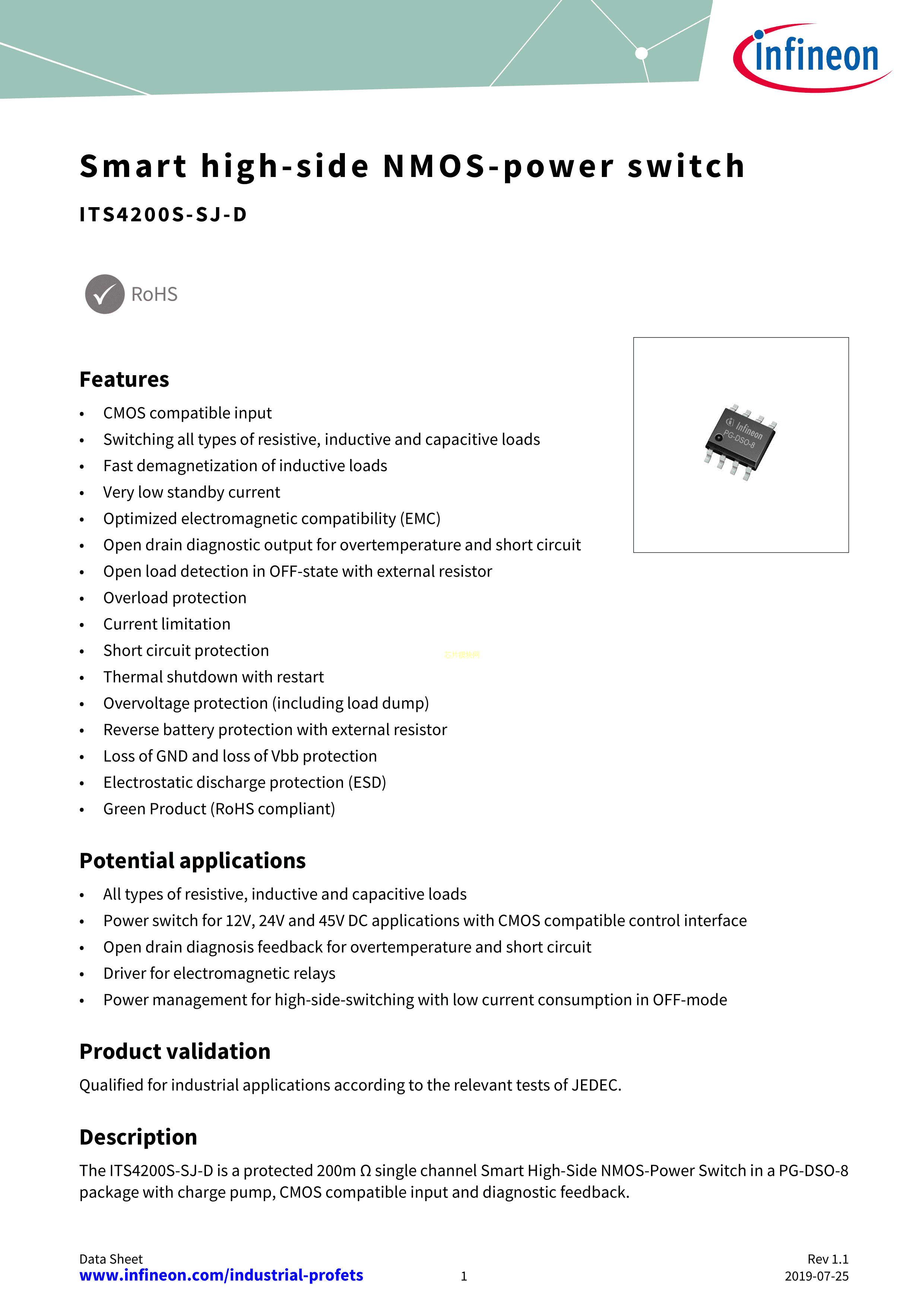 ITS4200S-SJ-D数据手册PG-DSO-8封装Infineon(英飞凌)PDF规格书,中英文