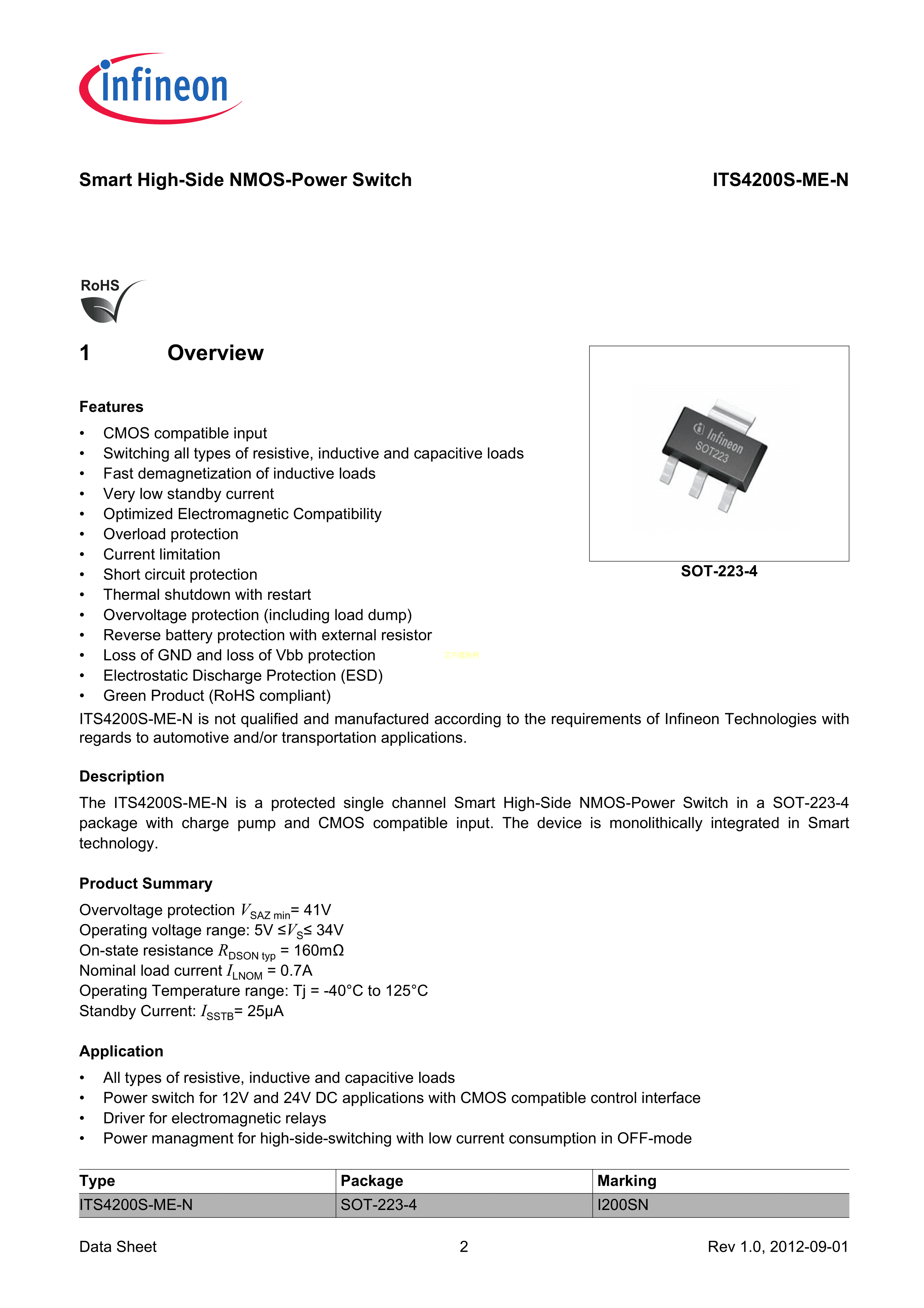 ITS4200SMENHUMA1数据手册SOT-223-4封装Infineon(英飞凌)PDF规格书