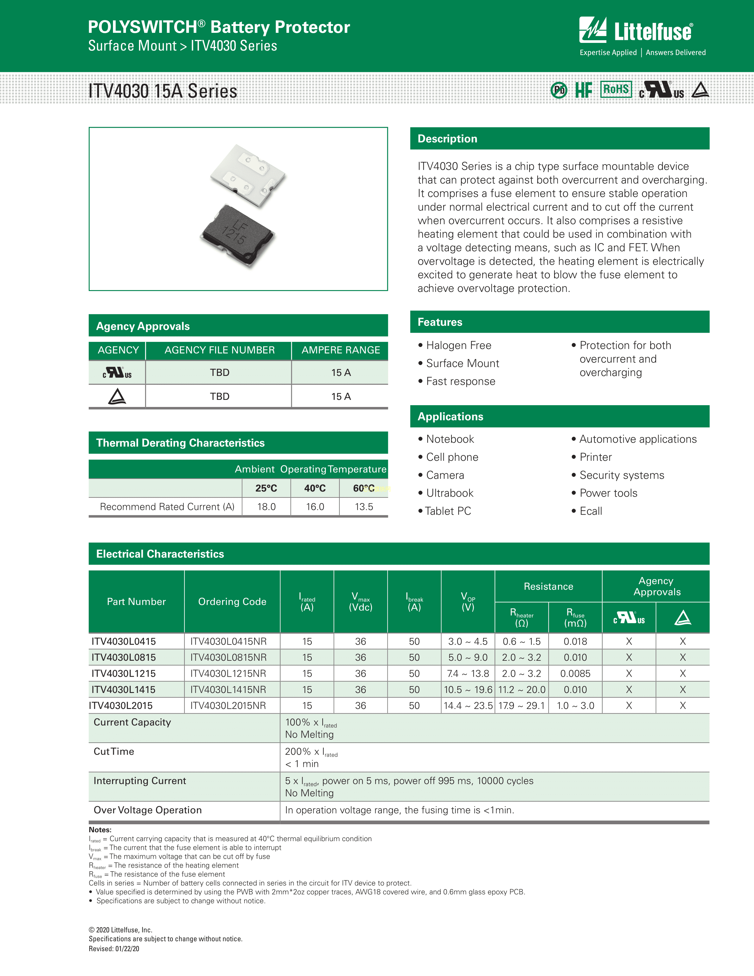 ITV4030L1215数据手册1612封装Littelfuse(美国力特)PDF规格书,中英文下载