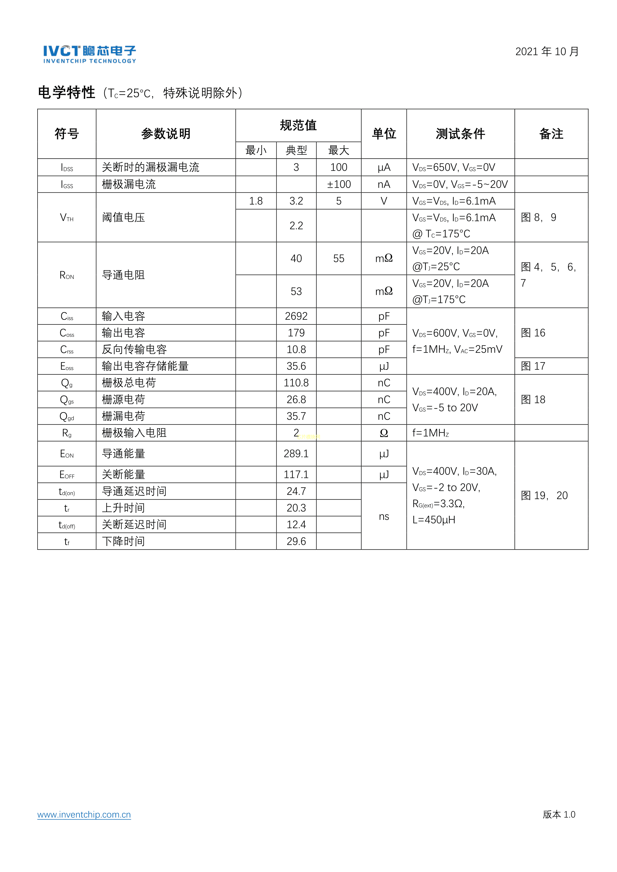 IV1Q06040T3数据手册TO247-3封装inventchip(瞻芯电子)PDF规格书,中英文