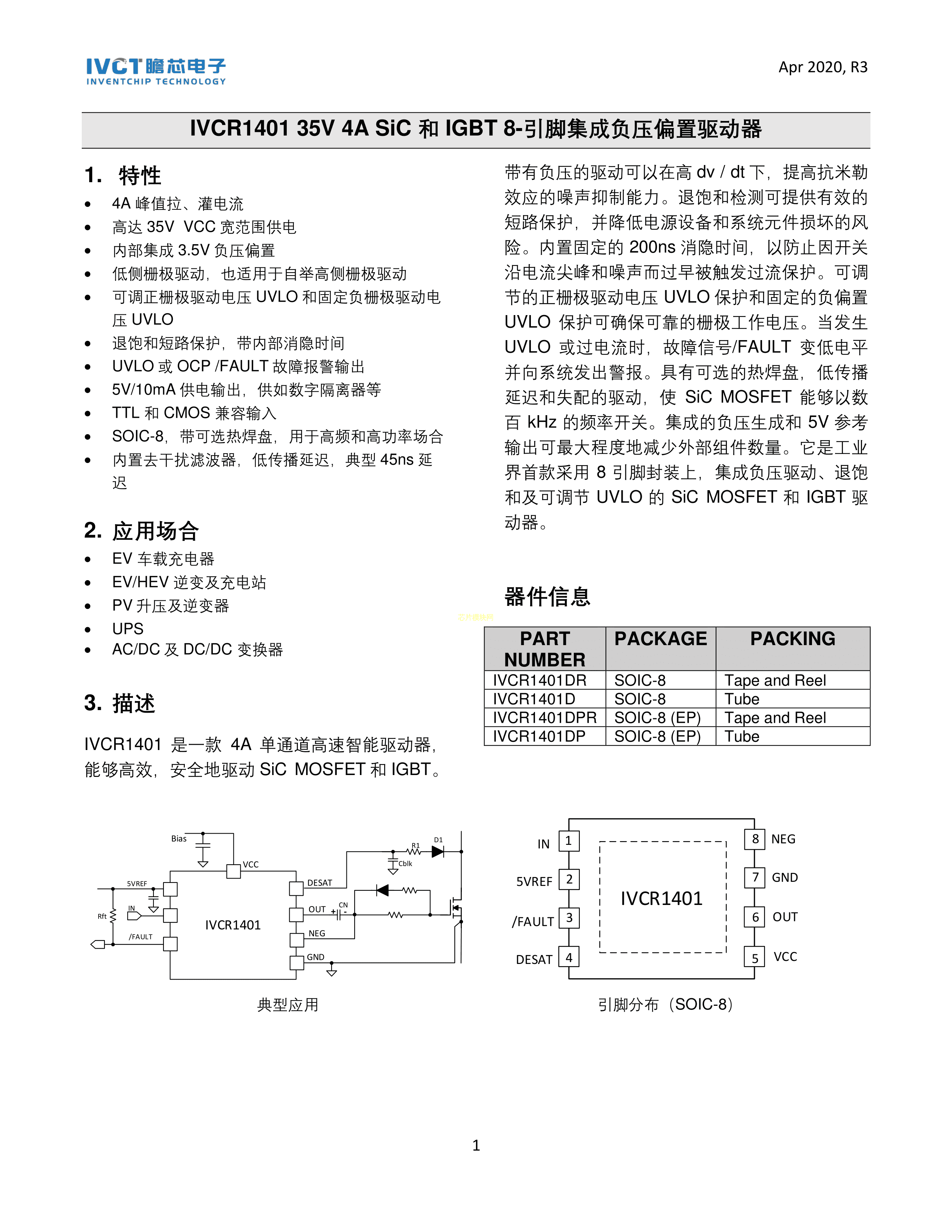 IVCR1401DPR数据手册SOIC-8(EP)封装inventchip(瞻芯电子)PDF规格书,