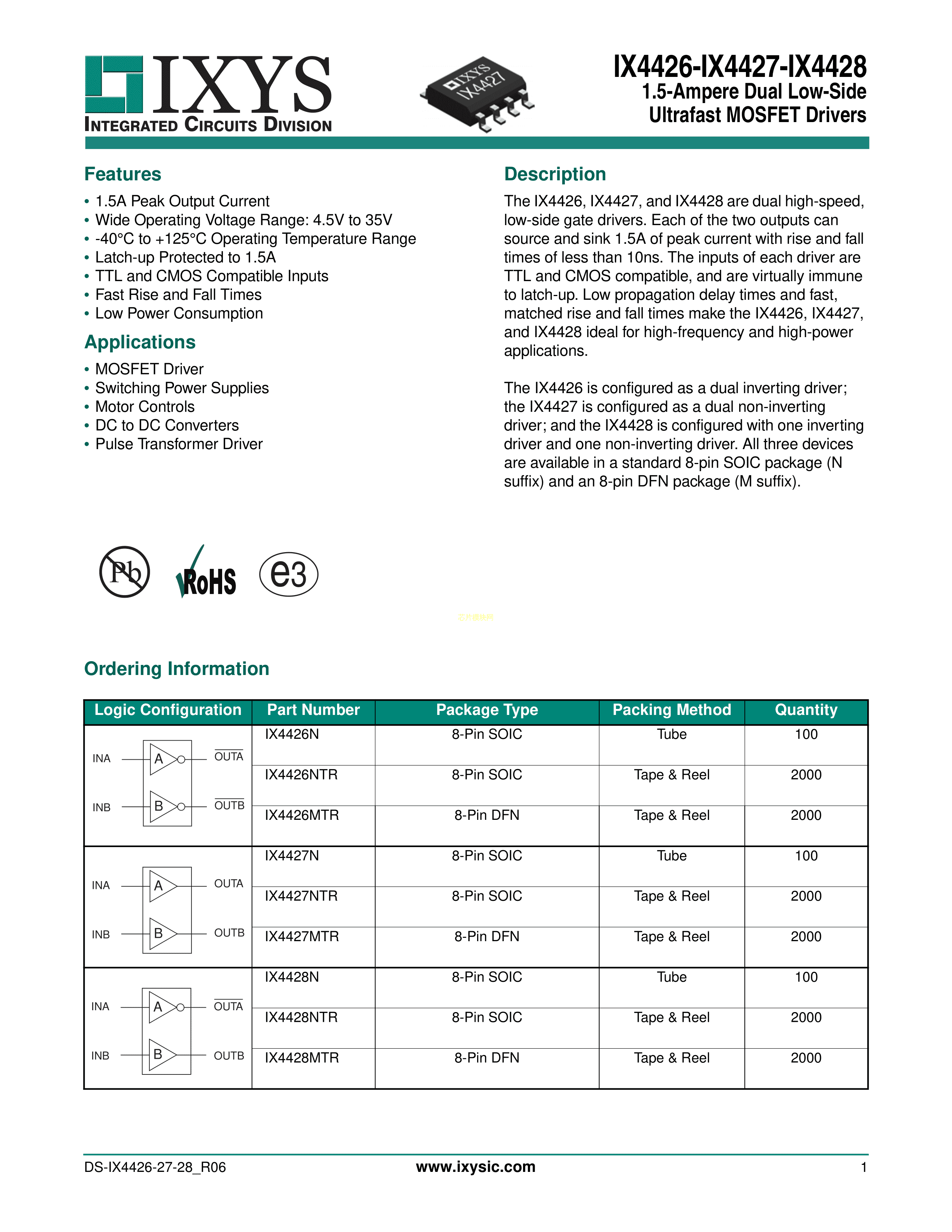 IX4428MTR数据手册DFN-8(3x3)封装IXYSPDF规格书,中英文下载