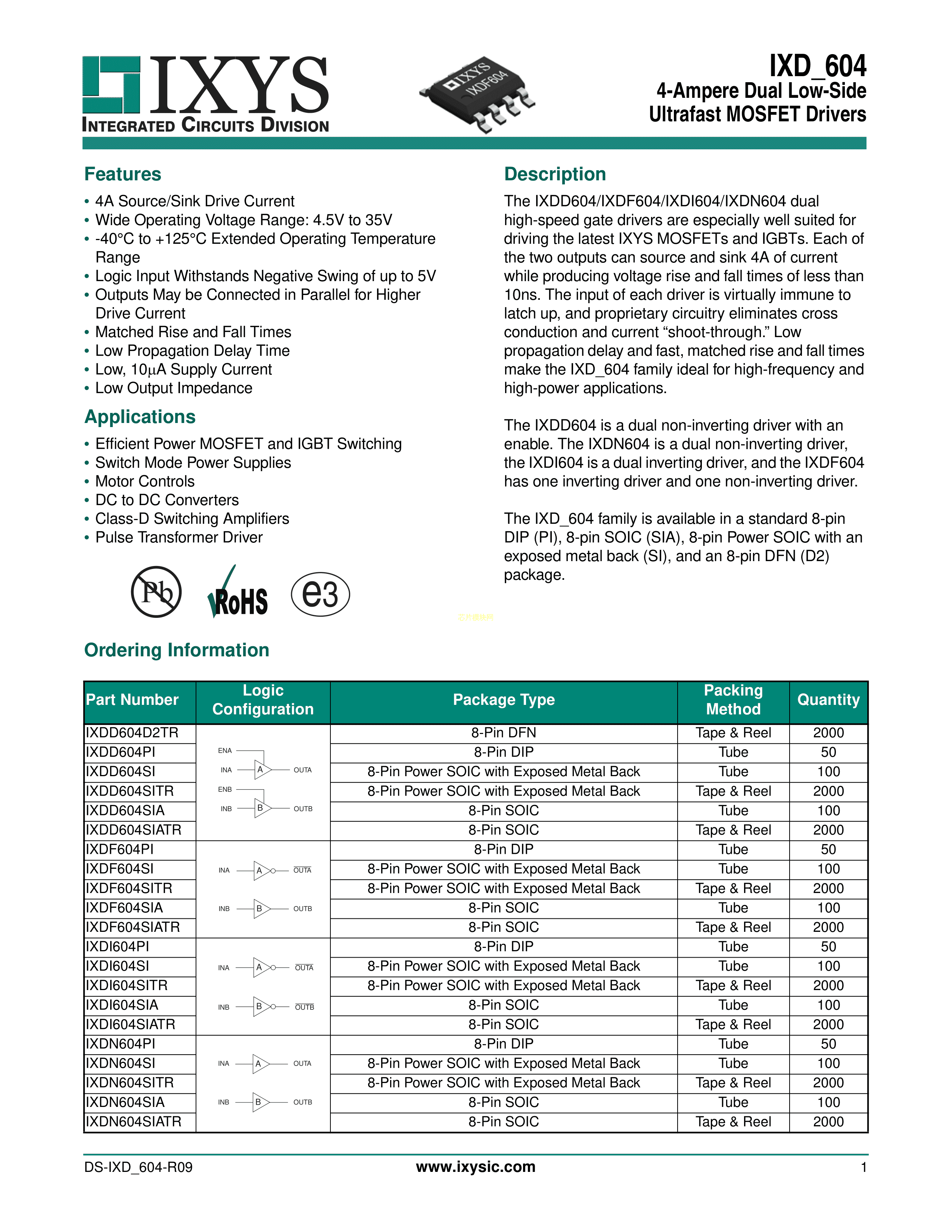 IXDD604SITR数据手册SOIC-8_EP封装IXYSPDF规格书,中英文下载