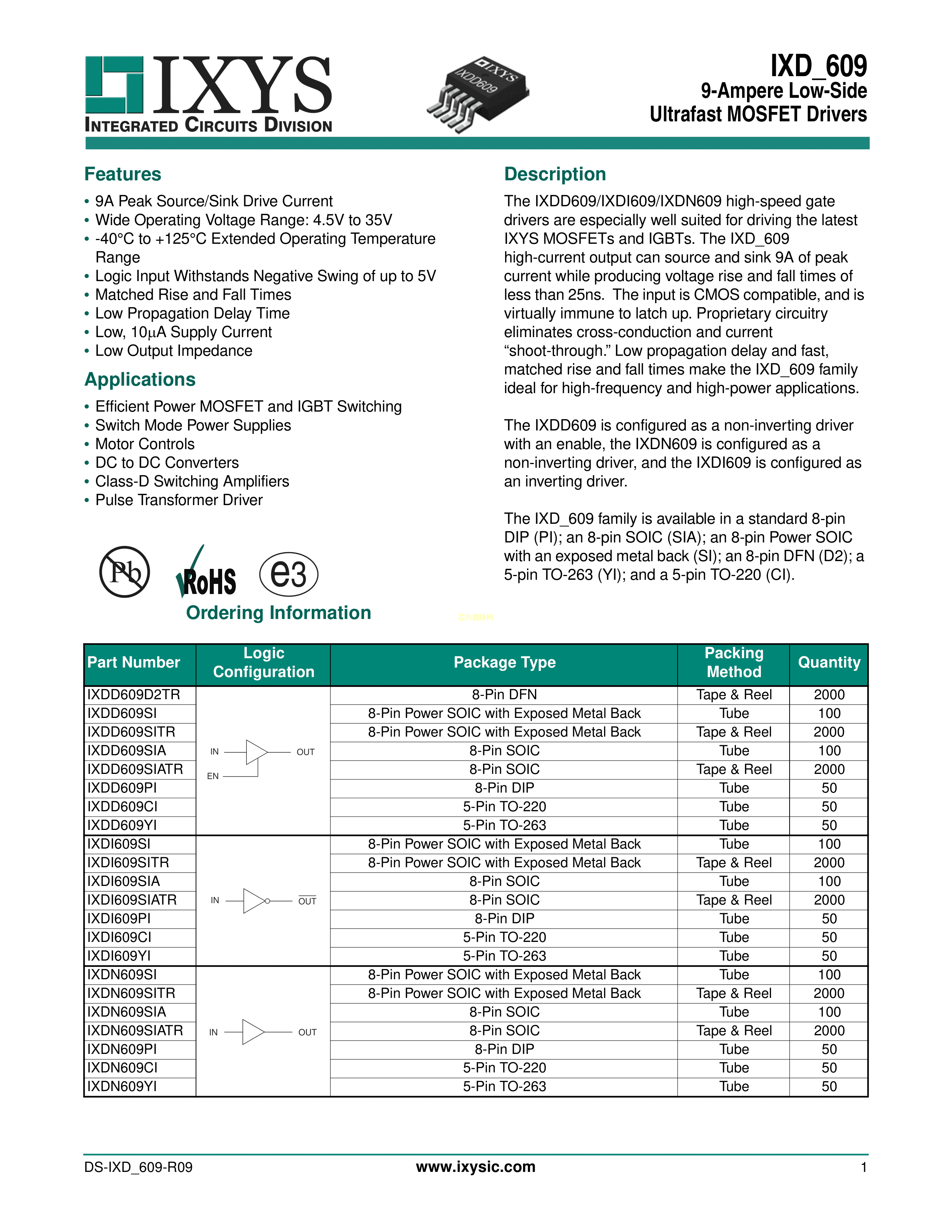 IXDD609CI数据手册TO-220-5封装Littelfuse(美国力特)PDF规格书,中英文下