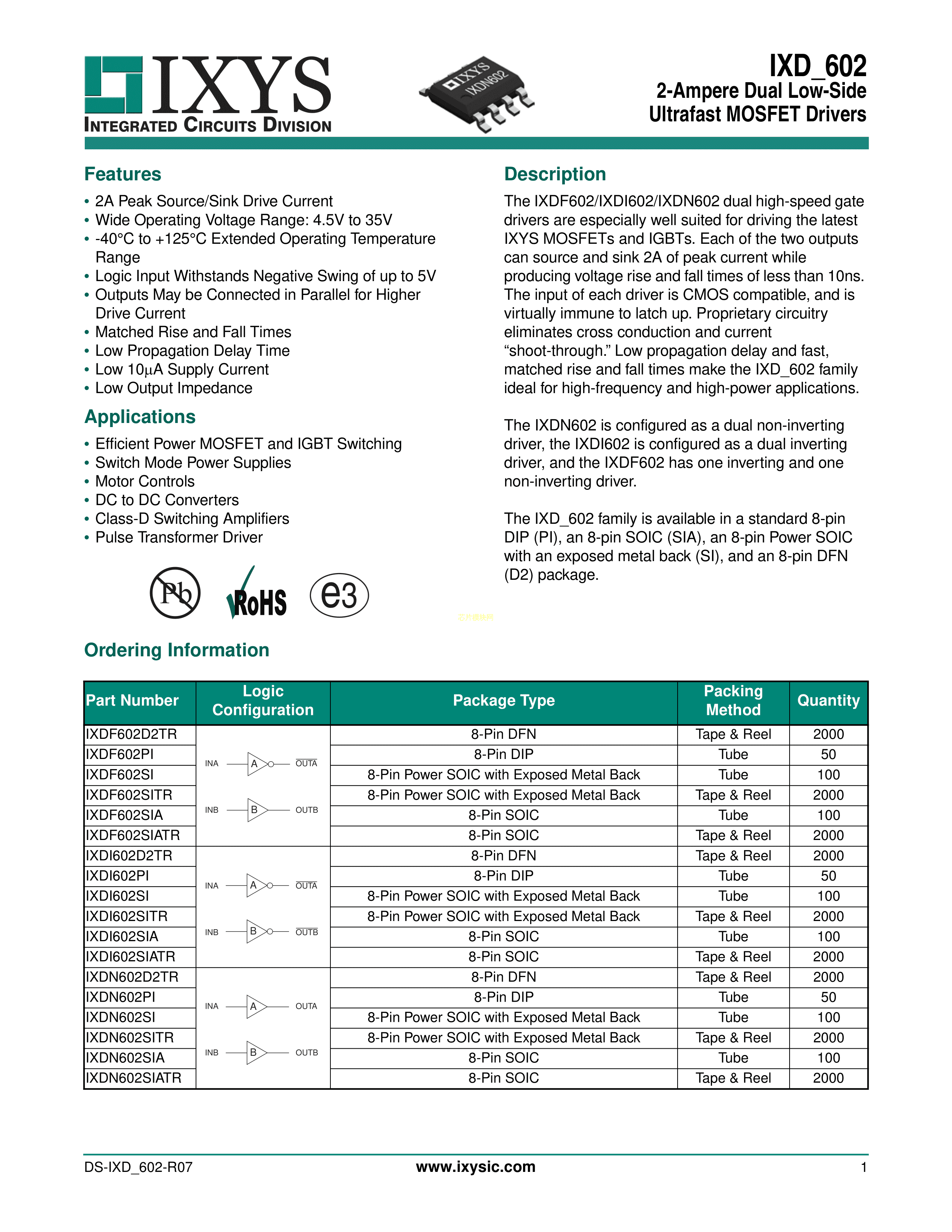 IXDF602PI数据手册DIP-8封装IXYSPDF规格书,中英文下载