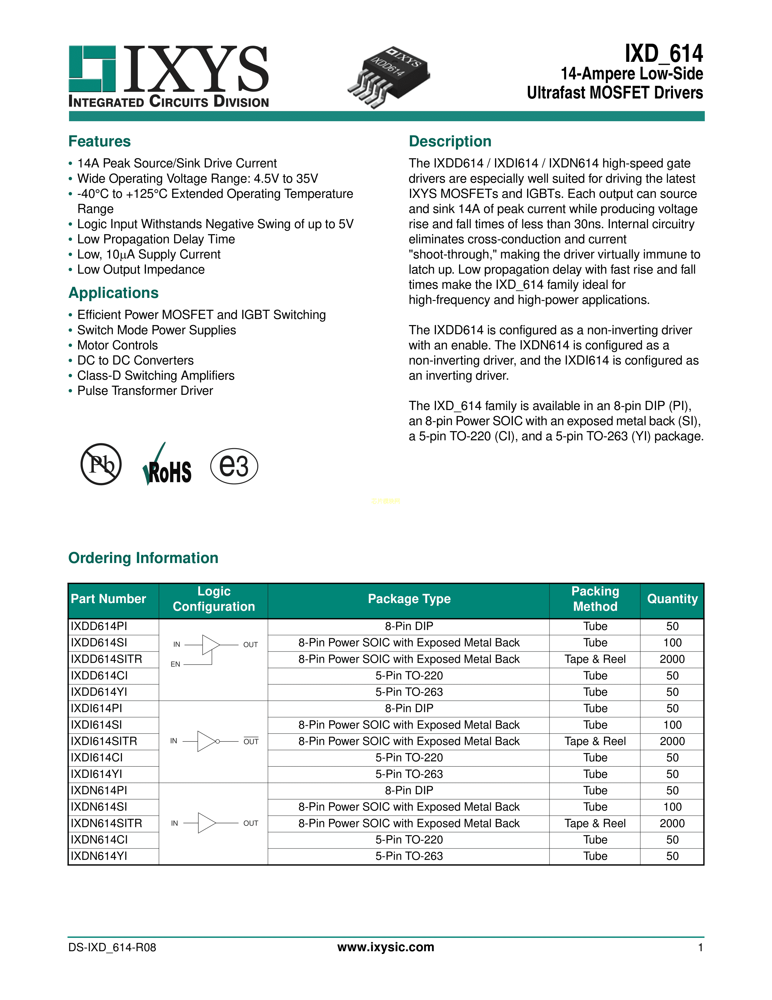 IXDN614SITR数据手册SOIC-8_EP封装IXYSPDF规格书,中英文下载