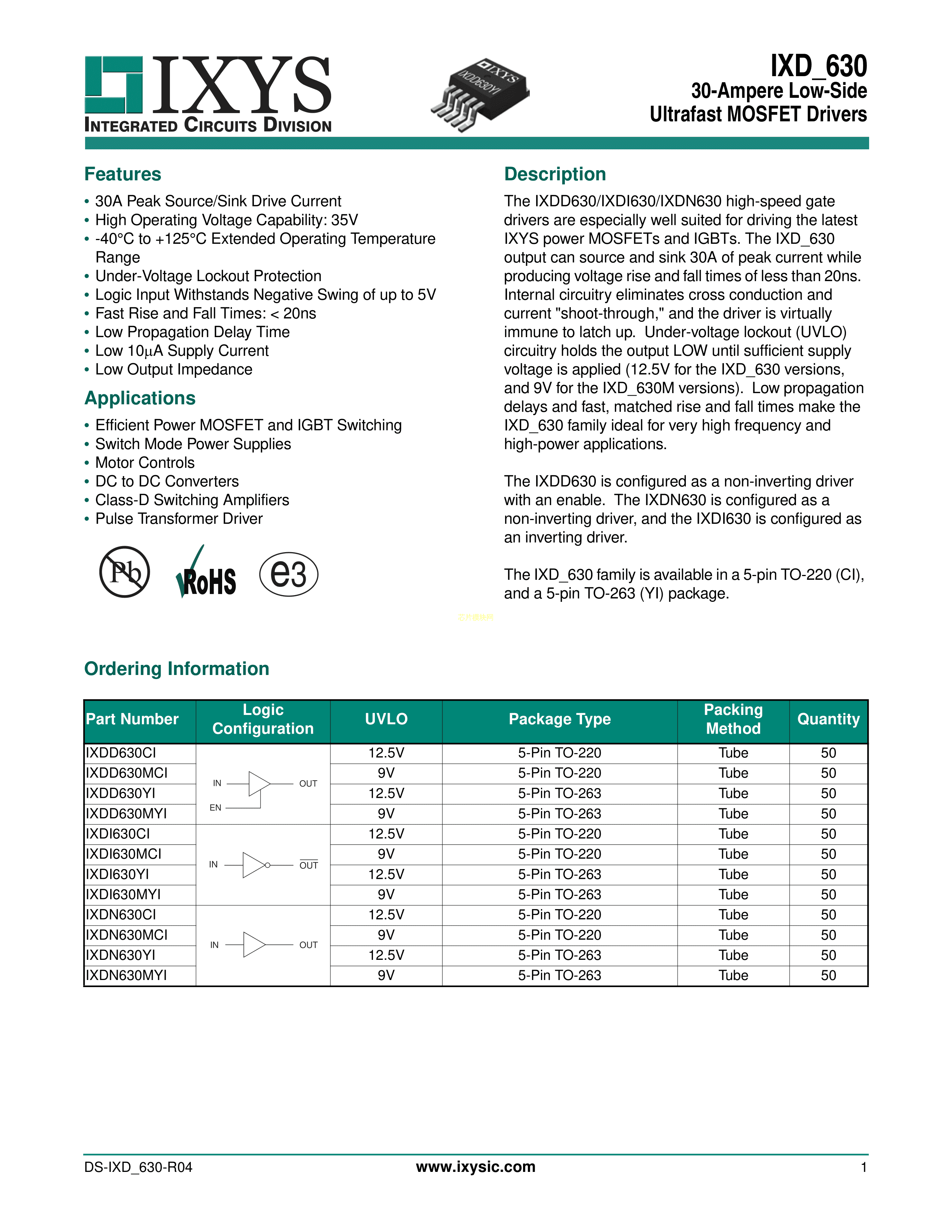 IXDN630MCI数据手册TO-220-5封装IXYSPDF规格书,中英文下载