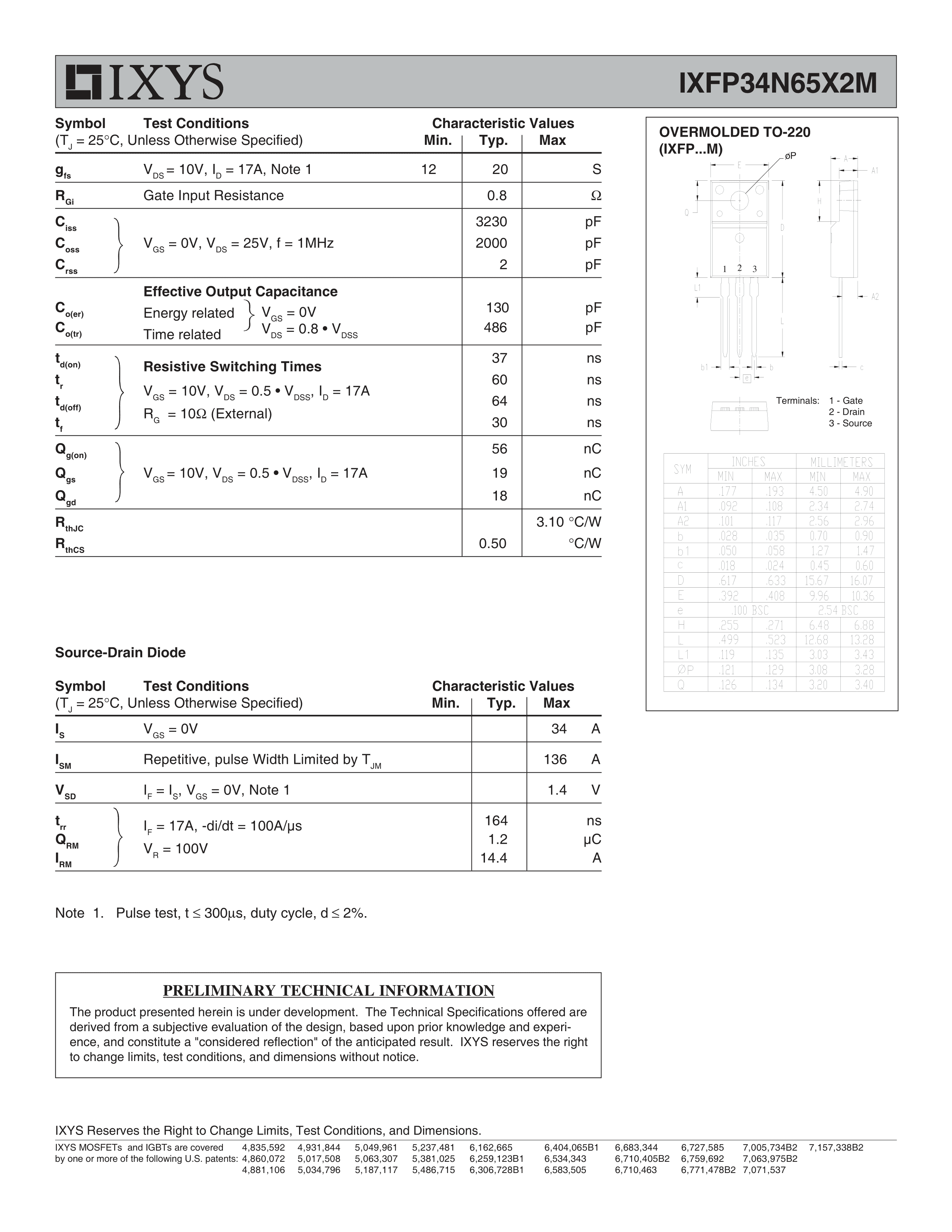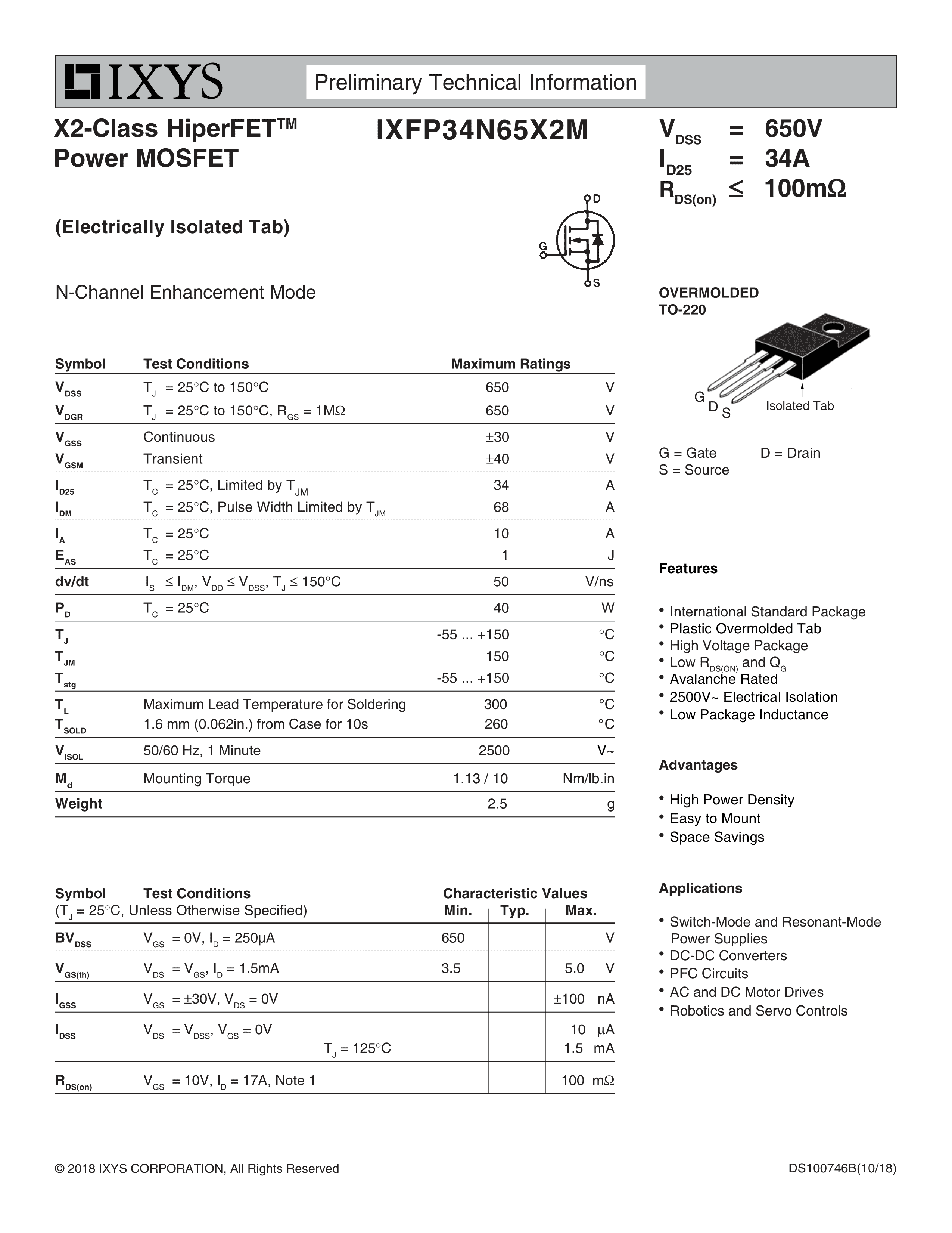 IXFP34N65X2M数据手册TO-220封装IXYSPDF规格书,中英文下载
