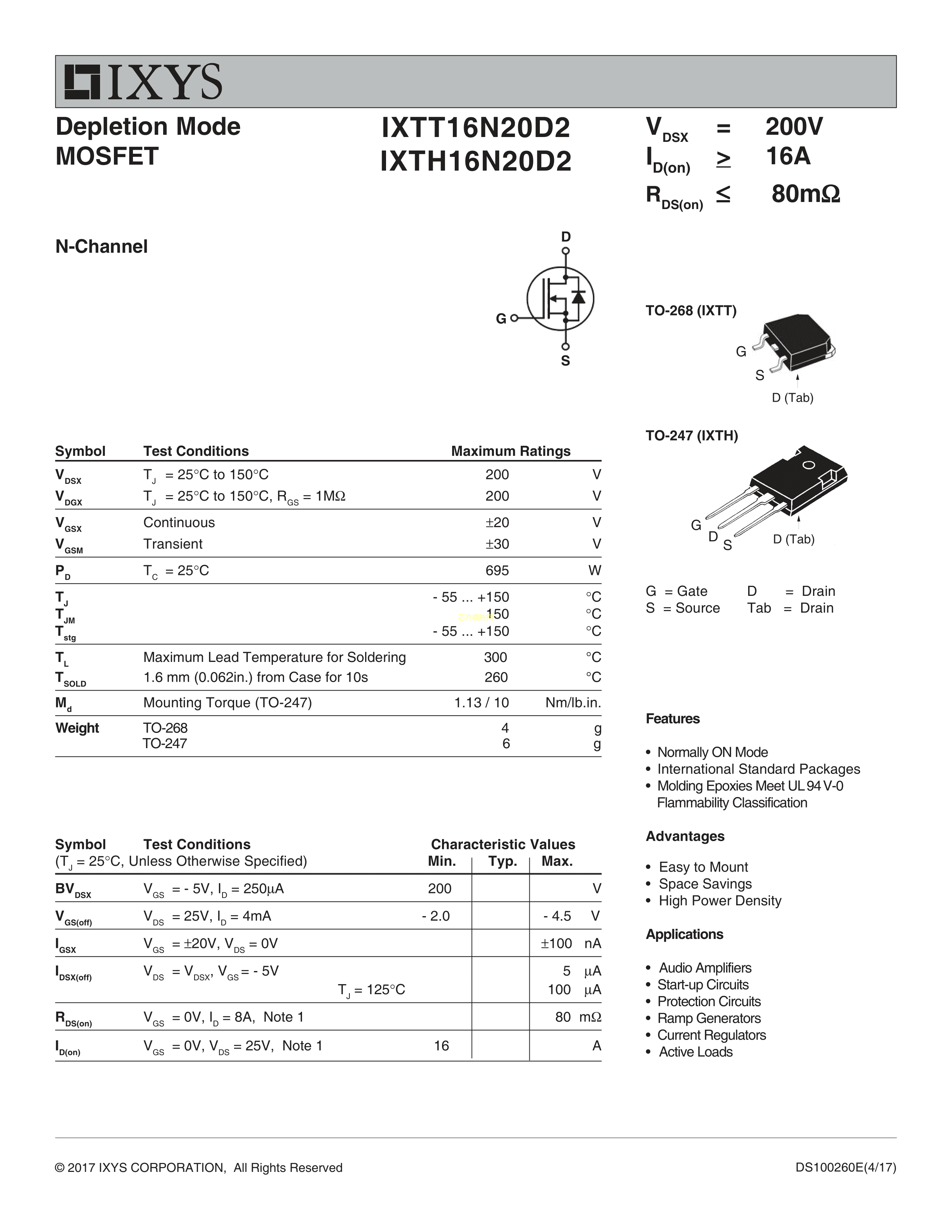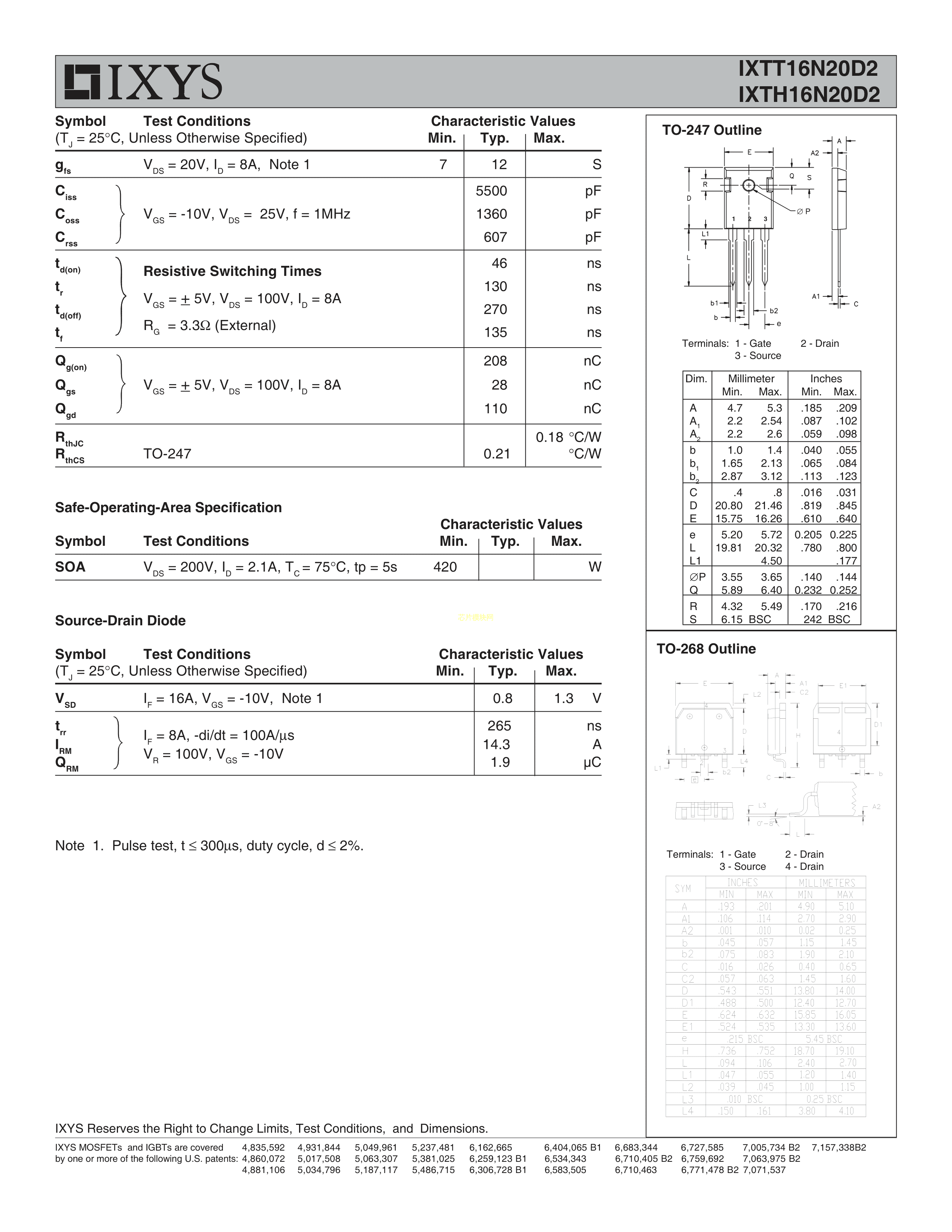 IXTT16N20D2数据手册TO-268-3封装IXYSPDF规格书,中英文下载