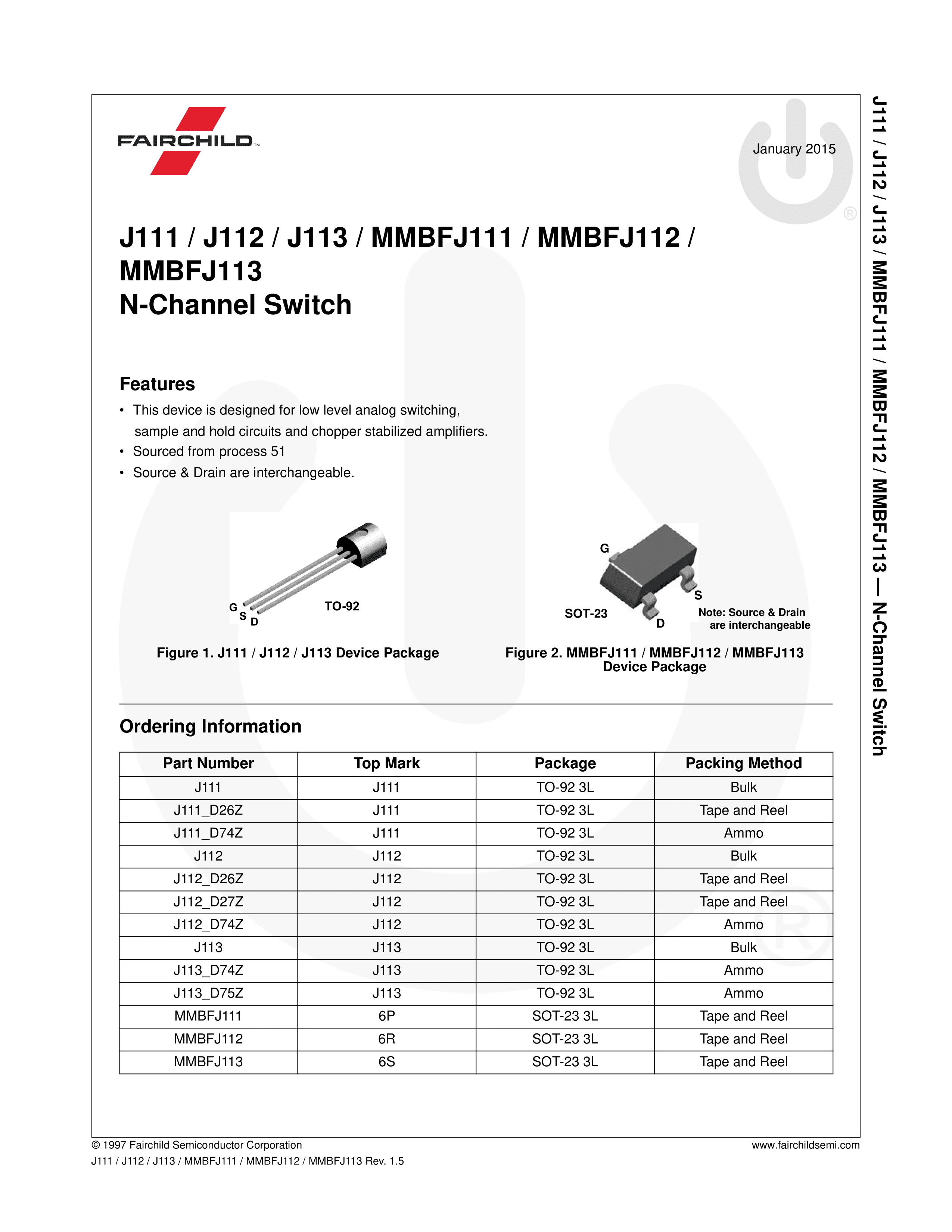 J111数据手册TO-92-3L封装onsemi(安森美)PDF规格书,中英文下载