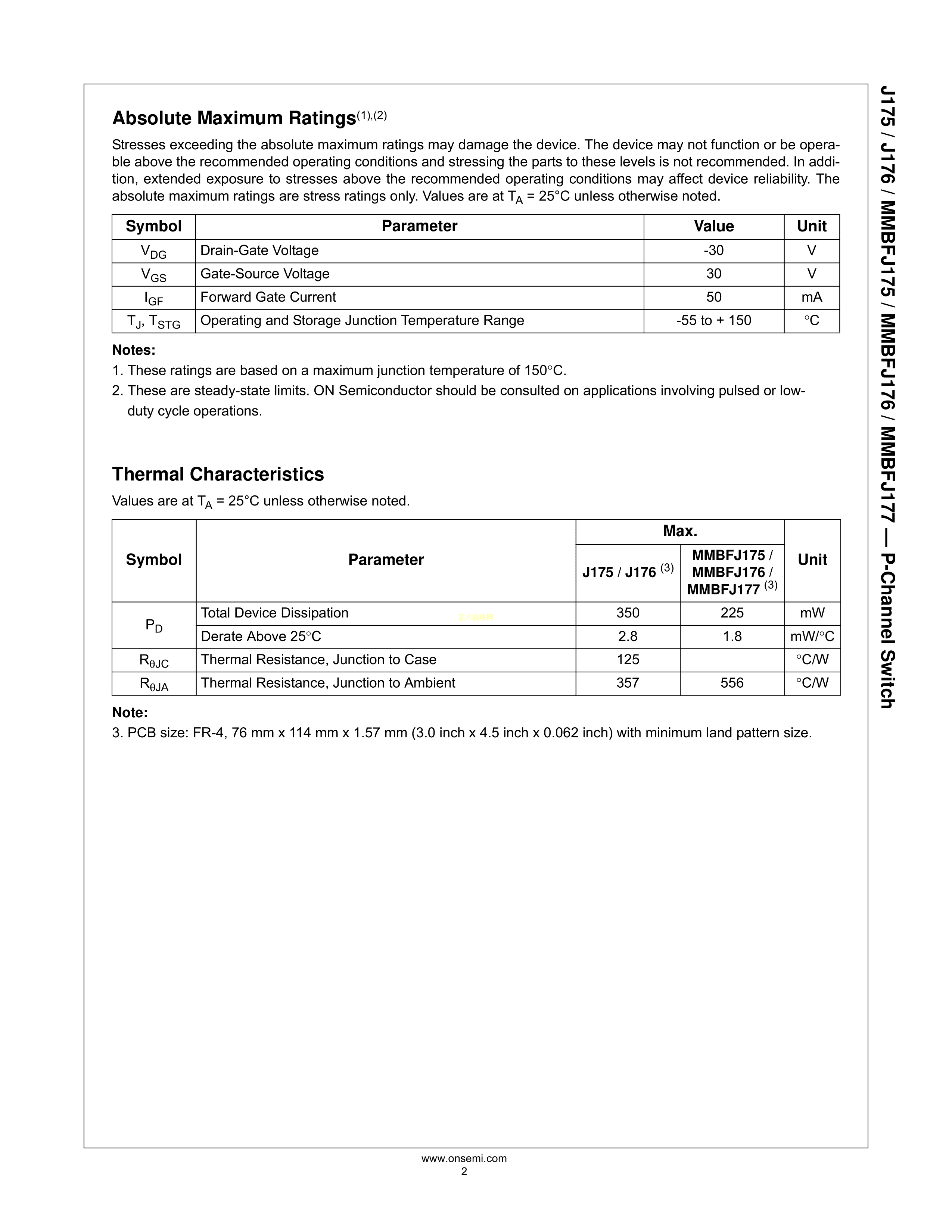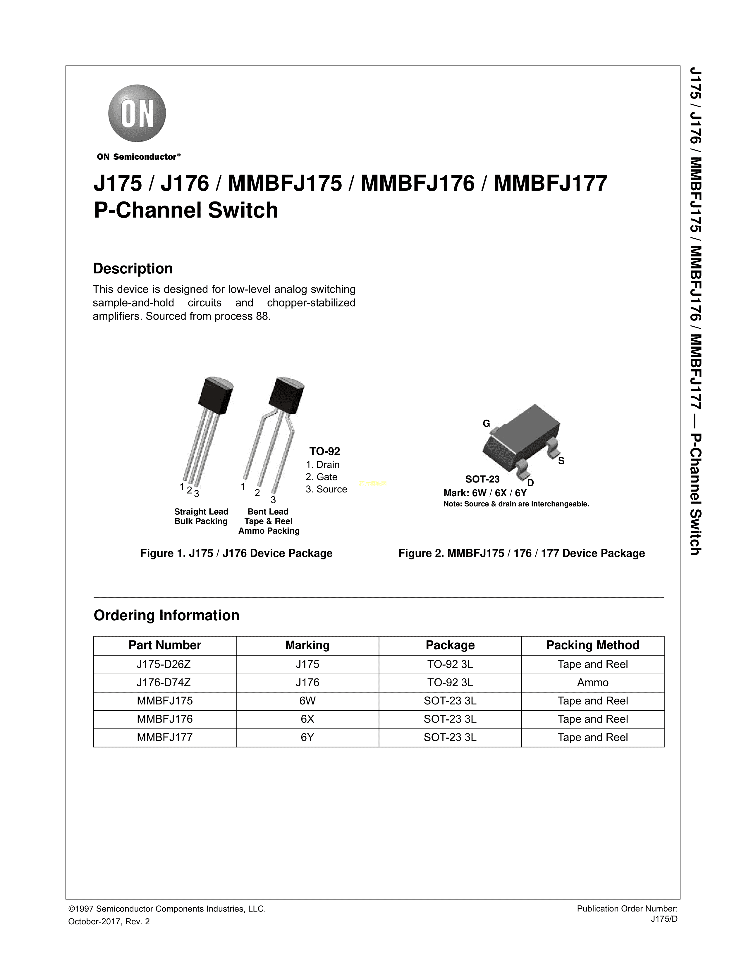 J176-D74Z数据手册TO-92-3L封装onsemi(安森美)PDF规格书,中英文下载