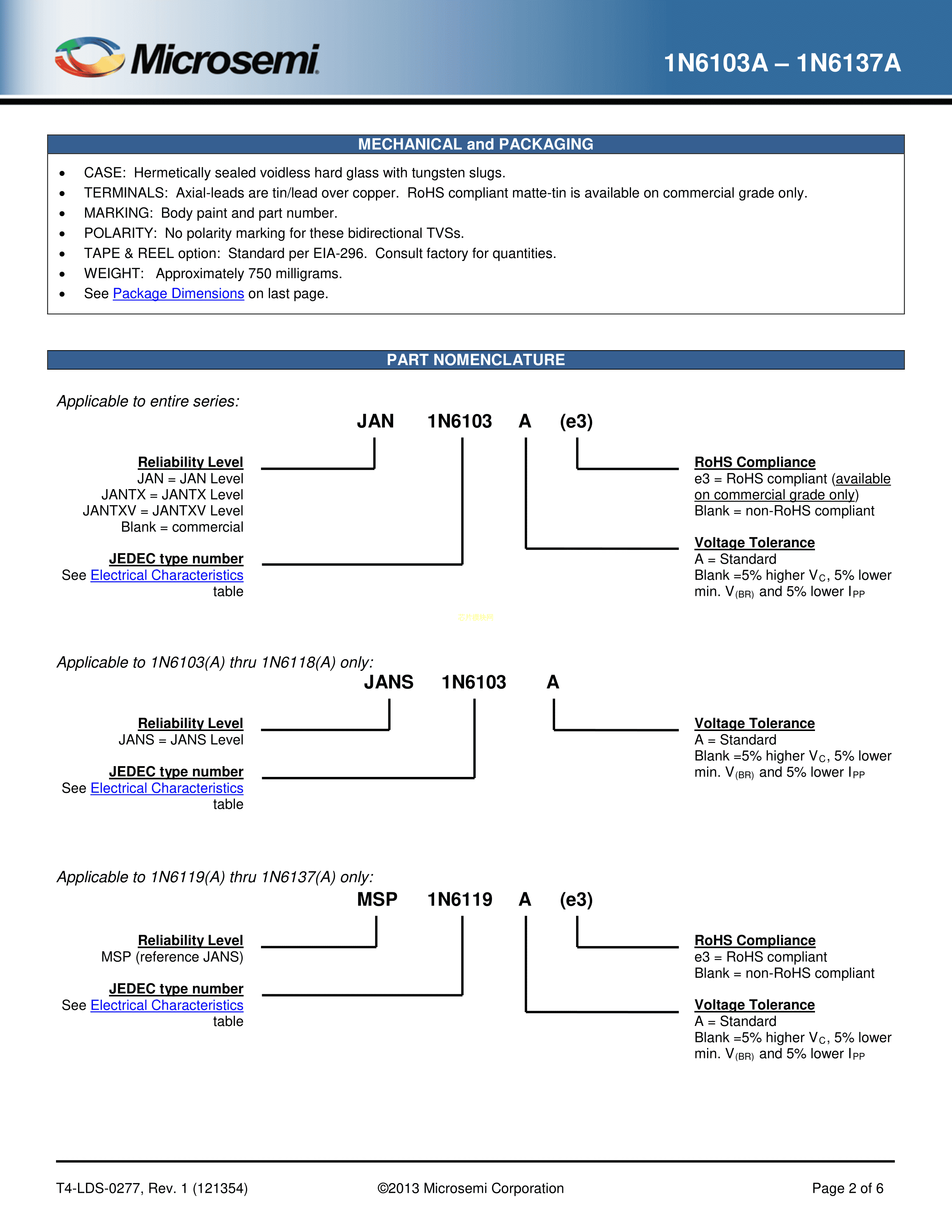 JAN1N6115A数据手册Axial封装Microsemi(美高森美)PDF规格书,中英文下载