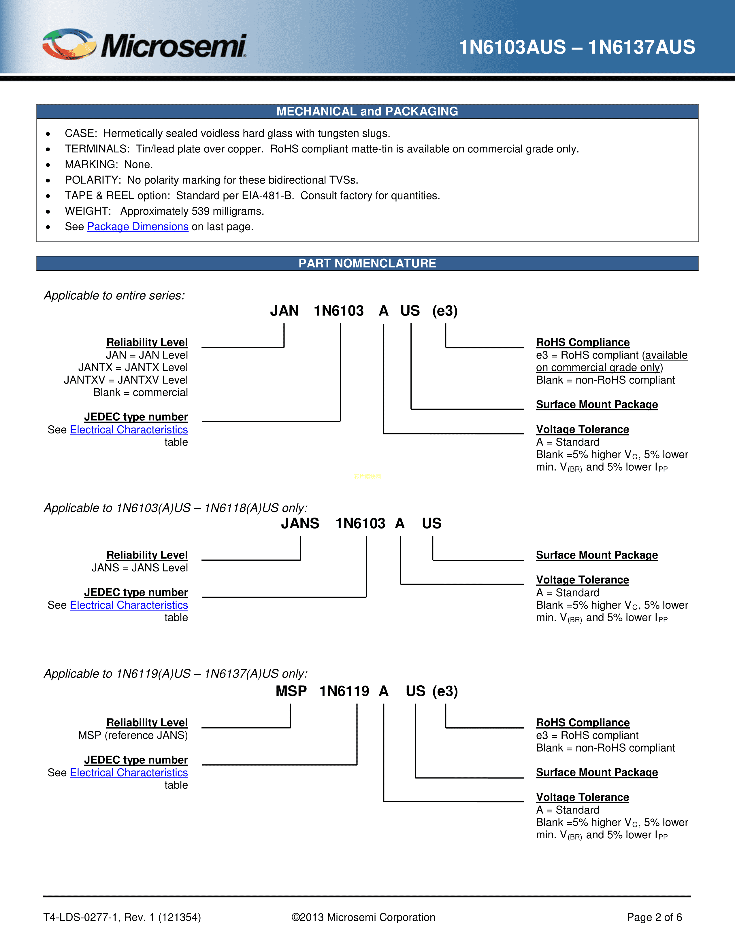 JAN1N6135US数据手册B-SQ-MELF封装Microsemi(美高森美)PDF规格书,中英