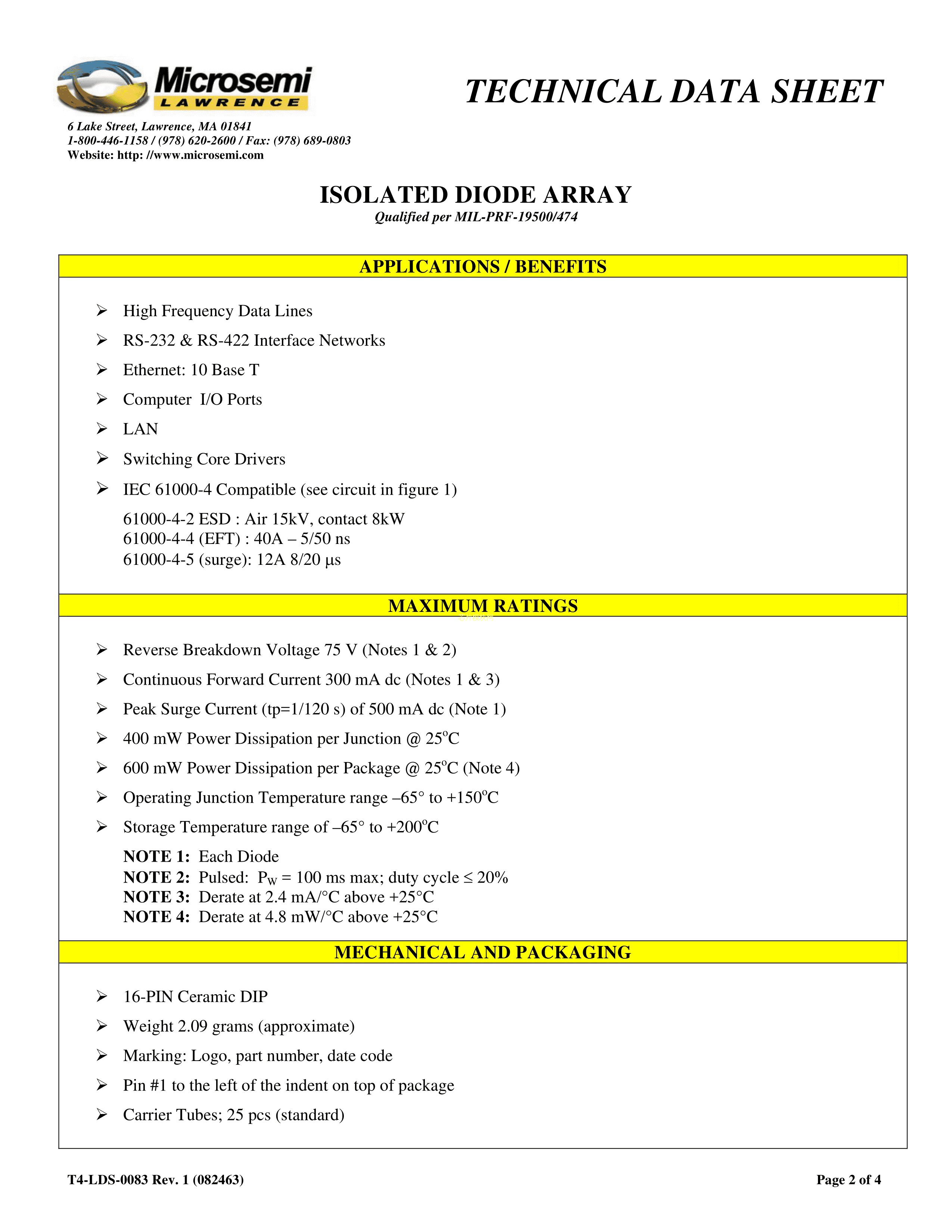 JANTX1N6101数据手册CDIP-16封装Microsemi(美高森美)PDF规格书,中英文下