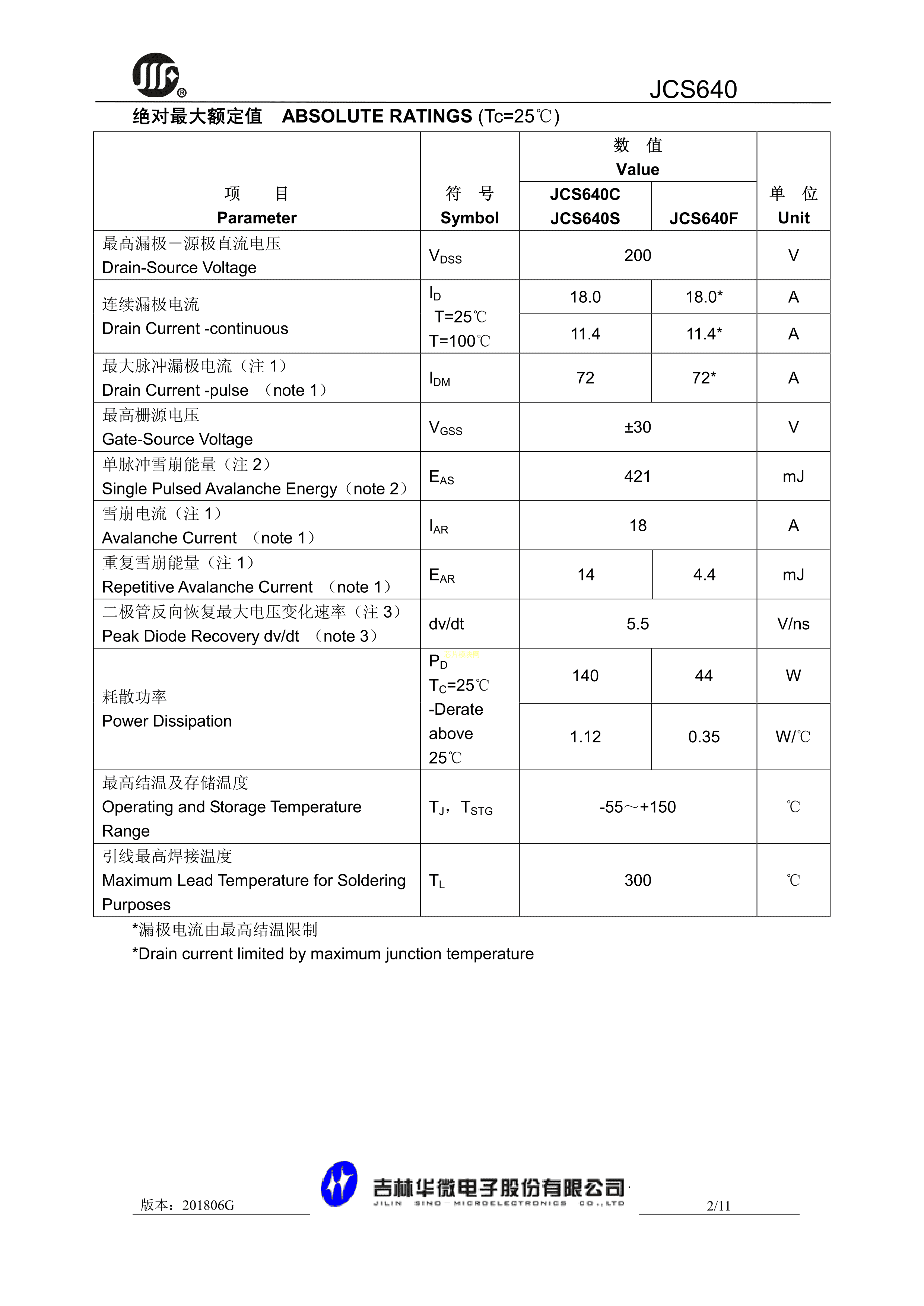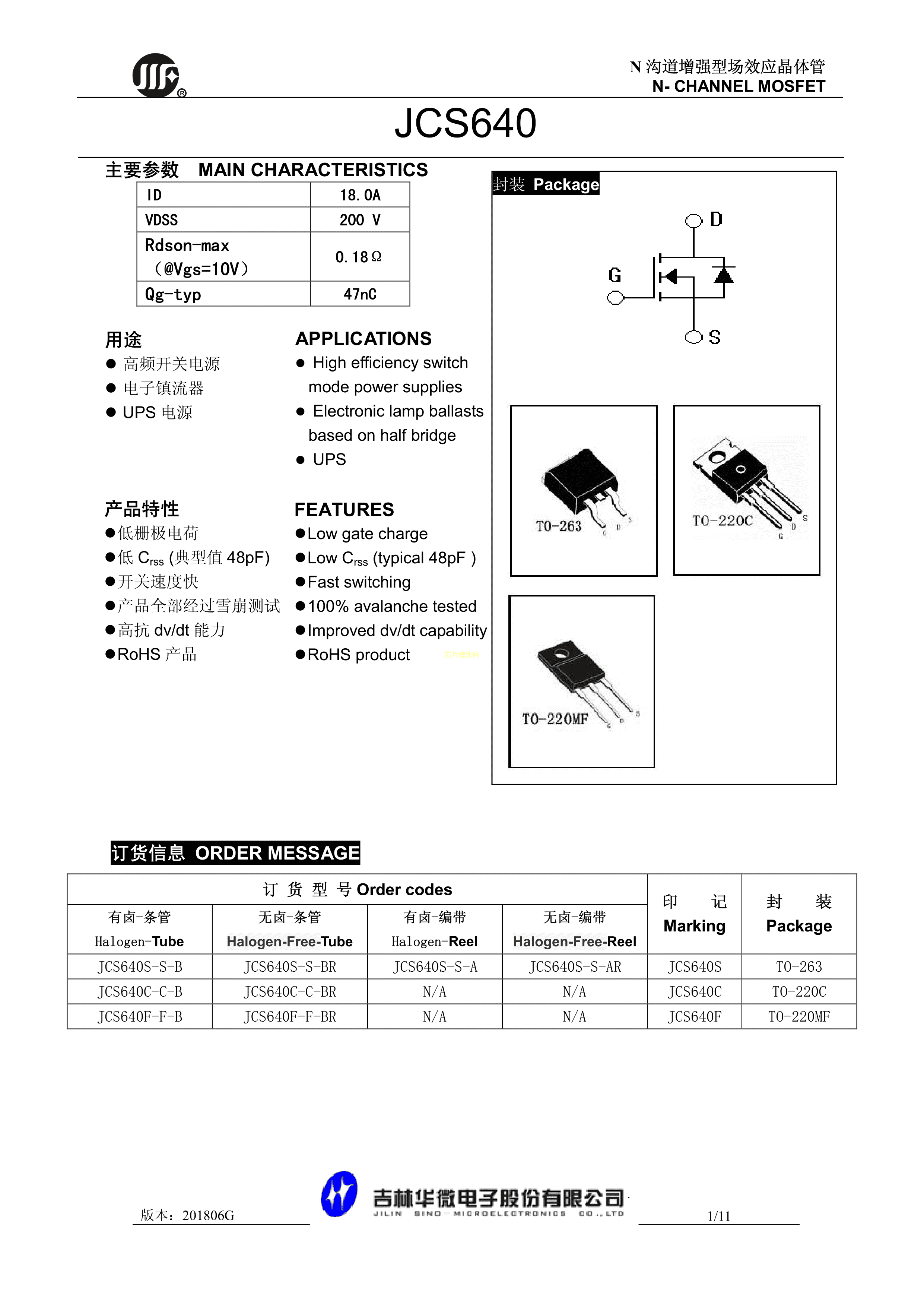 JCS640F数据手册TO-220MF封装吉林华微PDF规格书,中英文下载