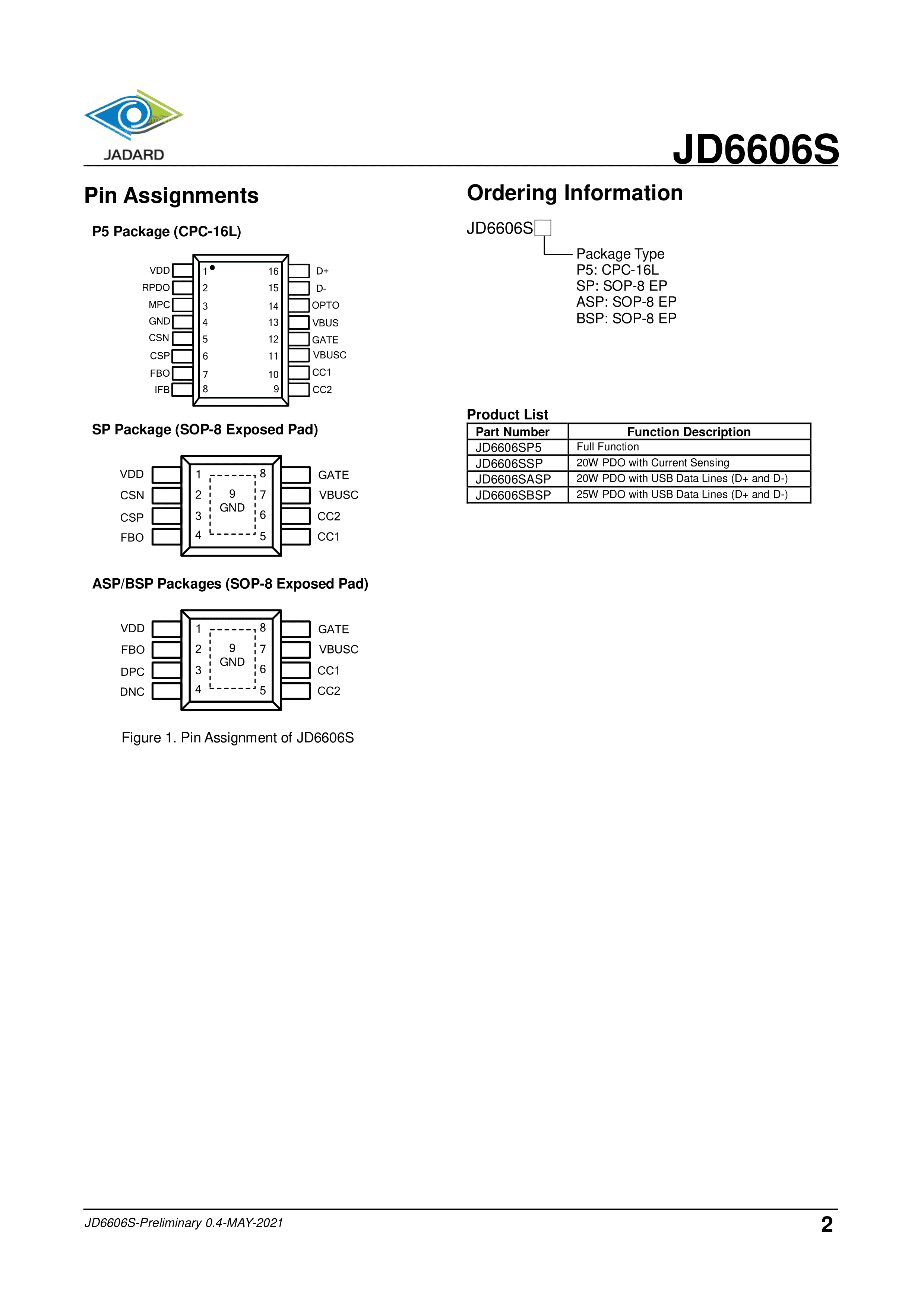 JD6606SSP数据手册SOP-8封装JADARD(天德钰)PDF规格书,中英文下载